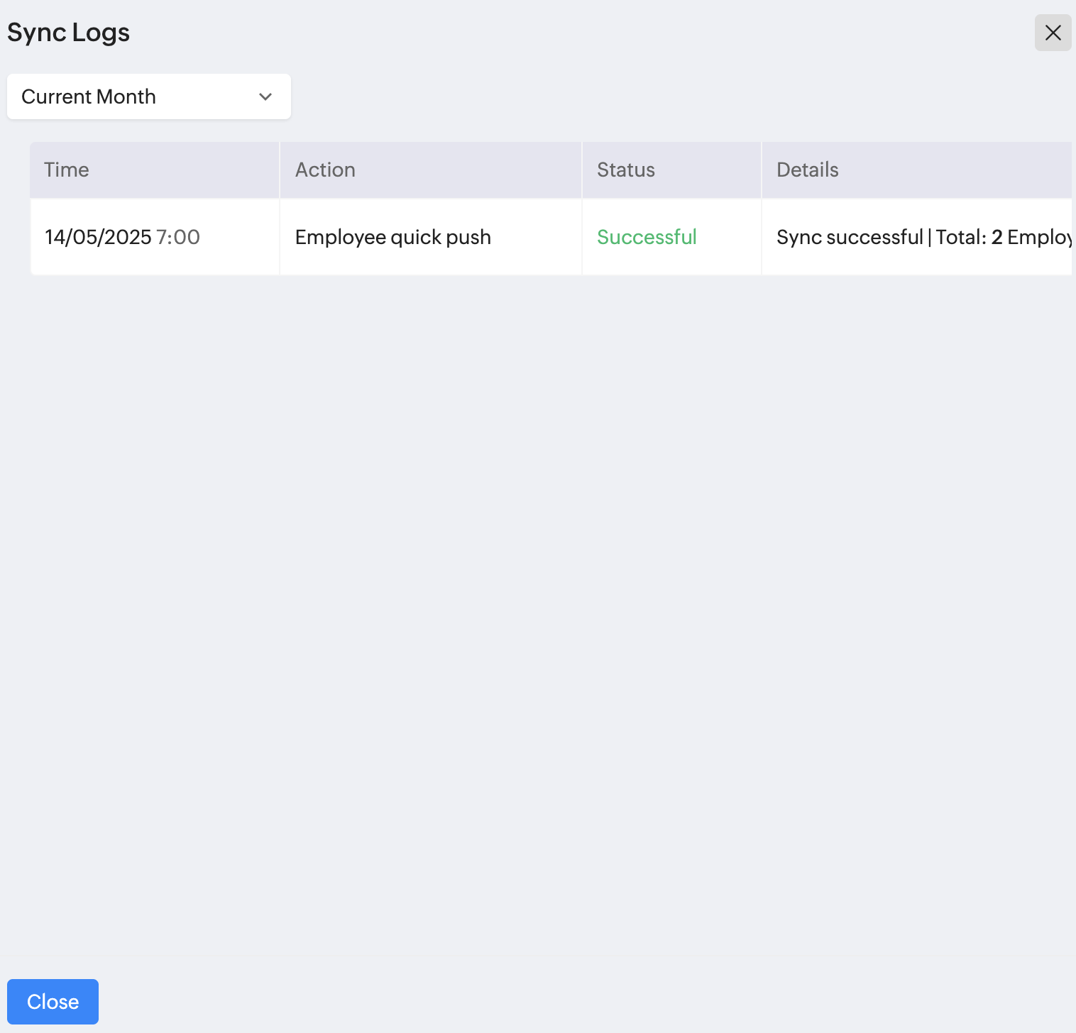 3. 先月の開始日以降の休暇データが同期対象となります(たとえば、現在5月15日の場合、4月1日以降のデータが同期されます)。