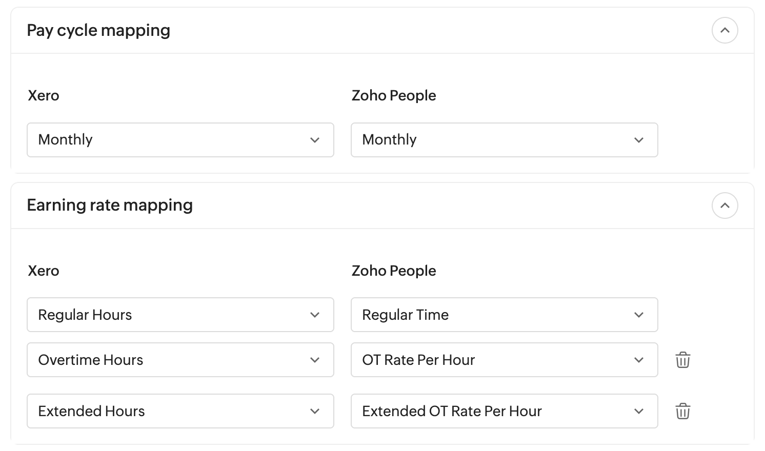 3. Zoho Peopleの給与期間は、Xero Payrollの給与頻度に関連付けられます。