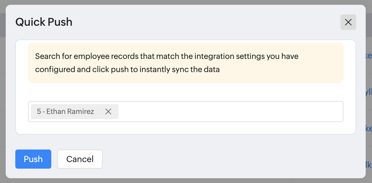 クイックプッシュボタンをクリックし、検索バーを使用して必要な従業員を検索して選択し、[送信する]をクリックします。
