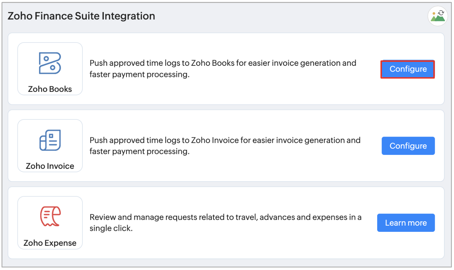 4. 自動同期を有効にすると、承認済みの工数の記録が自動的にZoho Booksへ送信されます。