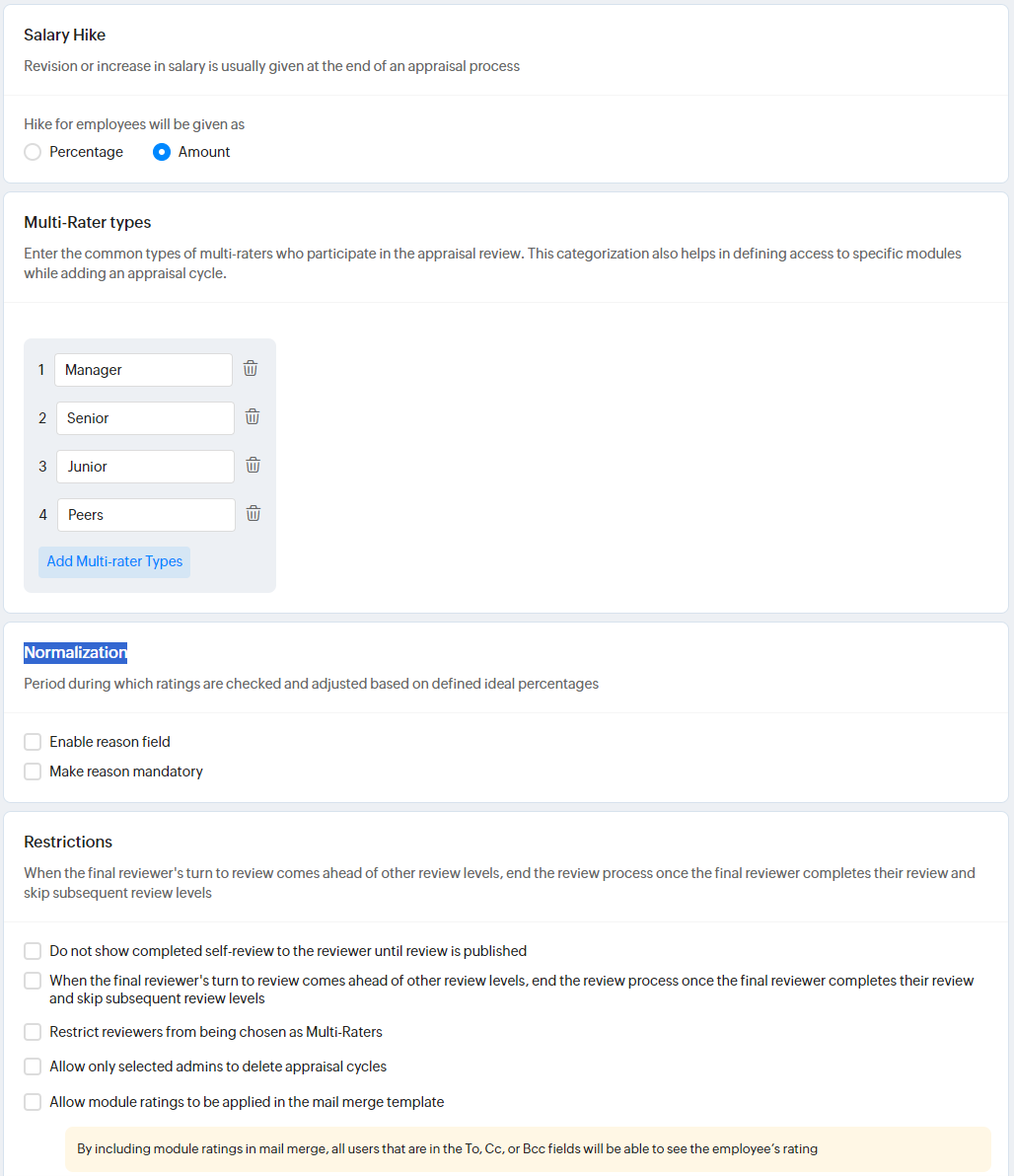 多面的評価を行う評価者の種類を指定できます。この分類は、特定の評価プロセスへのアクセス権を設定する際にも役立ちます。