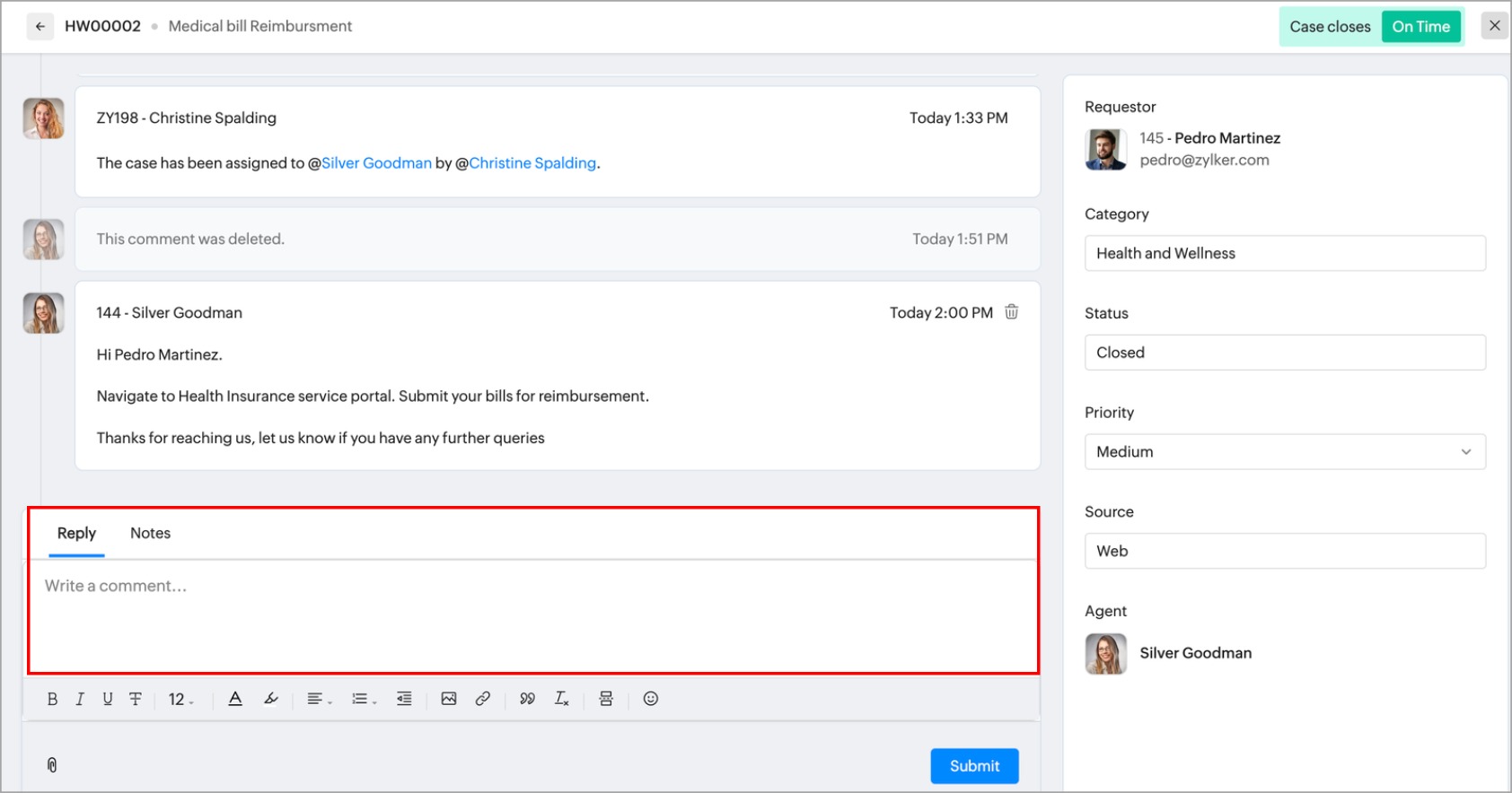 問い合わせが送信され、担当者に割り当てられます。