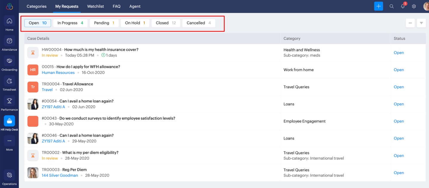 問い合わせの管理とは Zoho Peopleの「お問い合わせ」機能は、組織内で質問、申請、問い合わせを迅速かつ体系的に処理できる従業員問い合わせ管理システムです。この機能を使用すると、人事部は社内の問い合わせを効果的に解決できます。これにより、従業員の満足度が大幅に向上します。 この機能を実行できるユーザーと実行可能な操作 ...
