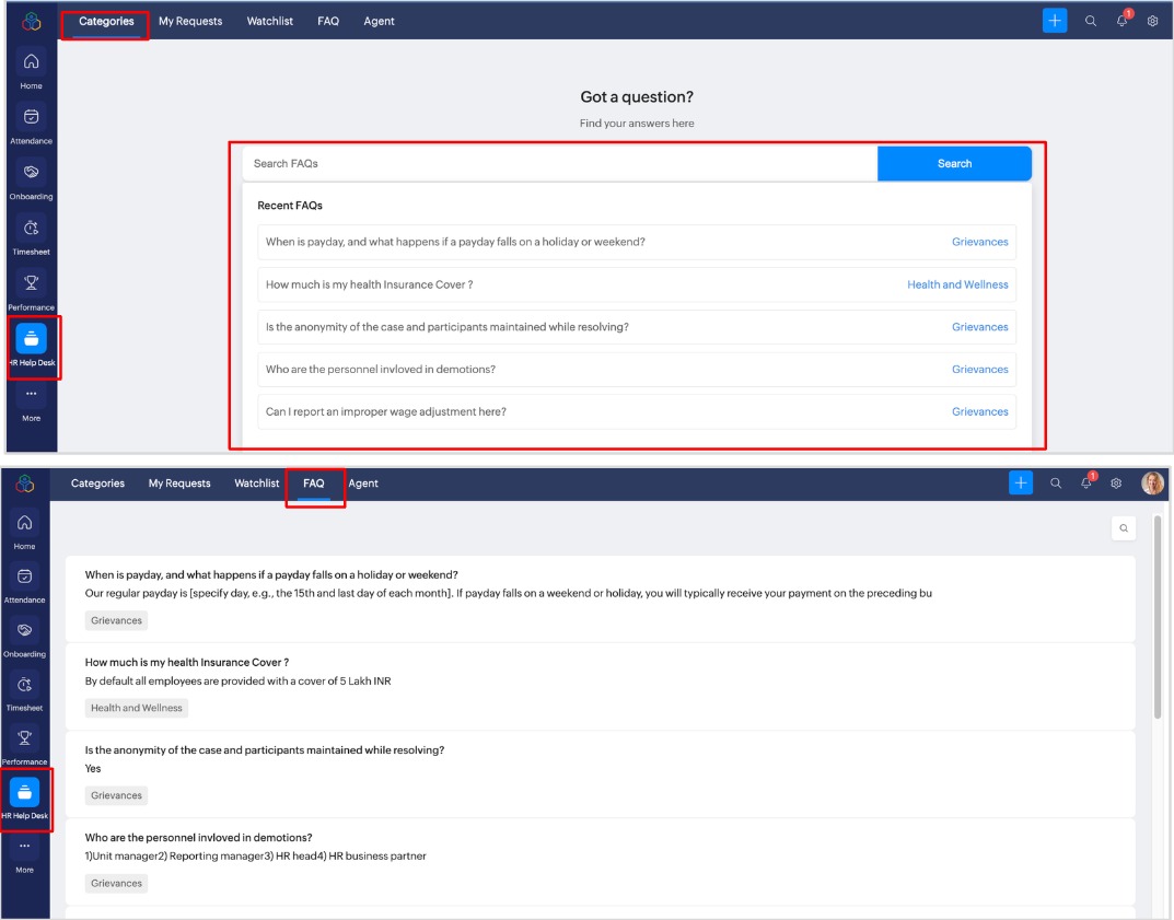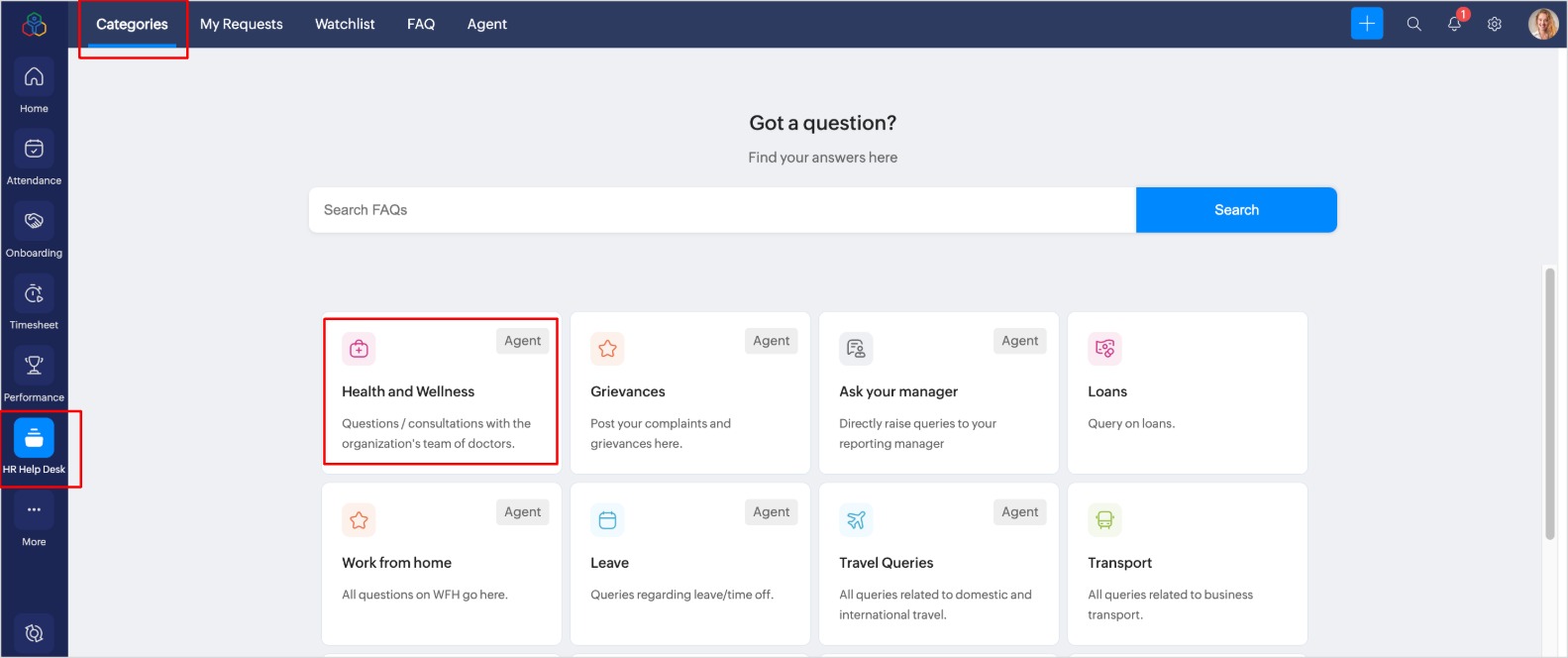 管理者と担当者は、自分で、または組織内の他の従業員のために問い合わせを提出できます。 問い合わせの提出 問い合わせを提出するには、以下の手順に従ってください。 問い合わせを提出する前に[カテゴリー]タブで検索ボックスを使用して、「よくある質問」をご参照ください。[よくある質問]タブにアクセスして、問い合わせに対する回答を見つけることもできます。回答を見つけるには、[よくある質問]タブをクリックしてください。 [お問い合わせ]→[カテゴリー]の順に移動します。 ...