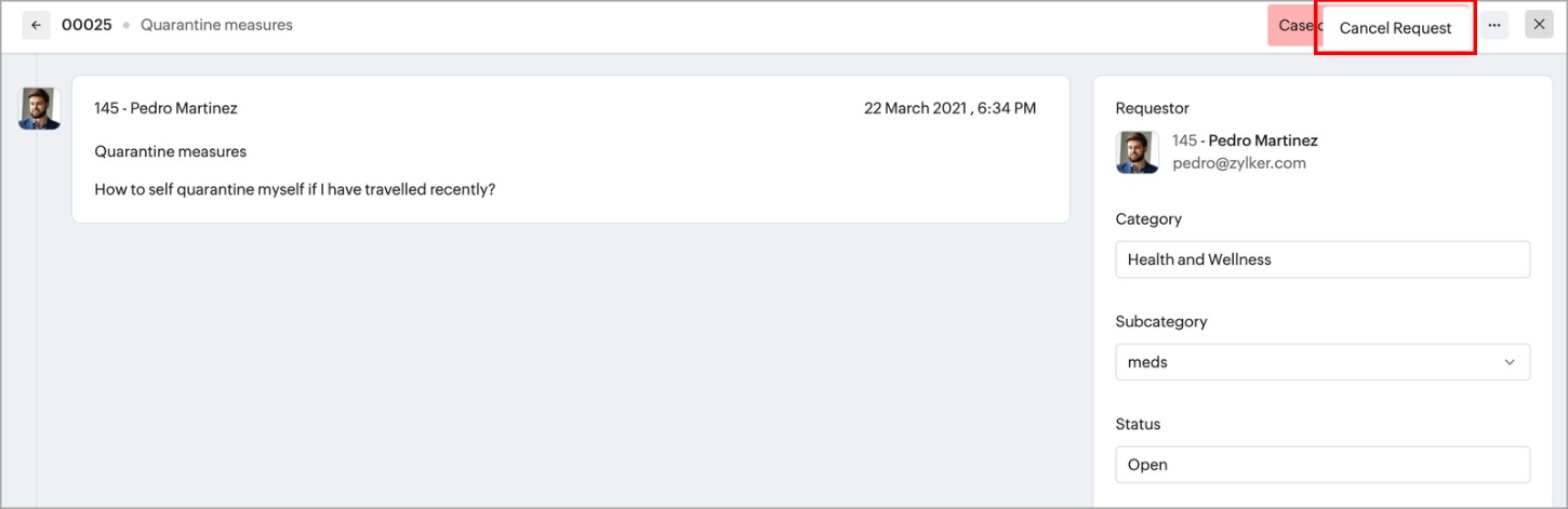 4. [申請をキャンセルする]をクリックします。問い合わせがキャンセルされます。