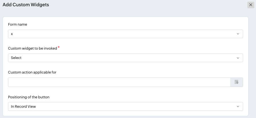 データ表示内:関連フォームのデータ表示ページにカスタムボタンウィジェットを追加します。