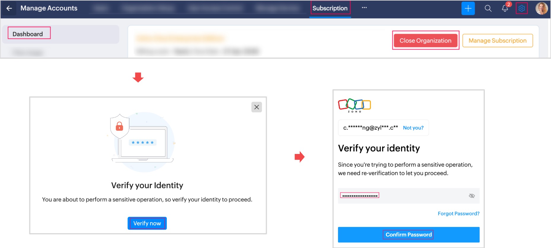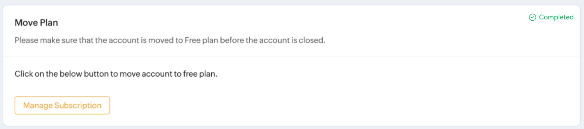 3. 利用している組織アカウントがZoho Oneパッケージの一部である場合は、組織アカウントとZoho Oneパッケージとの関連付けを解除する必要があります。この解除については、support@zohoone.comにお問い合わせください。このステップが表示されるのは、Zoho Oneパッケージを利用している場合のみです。