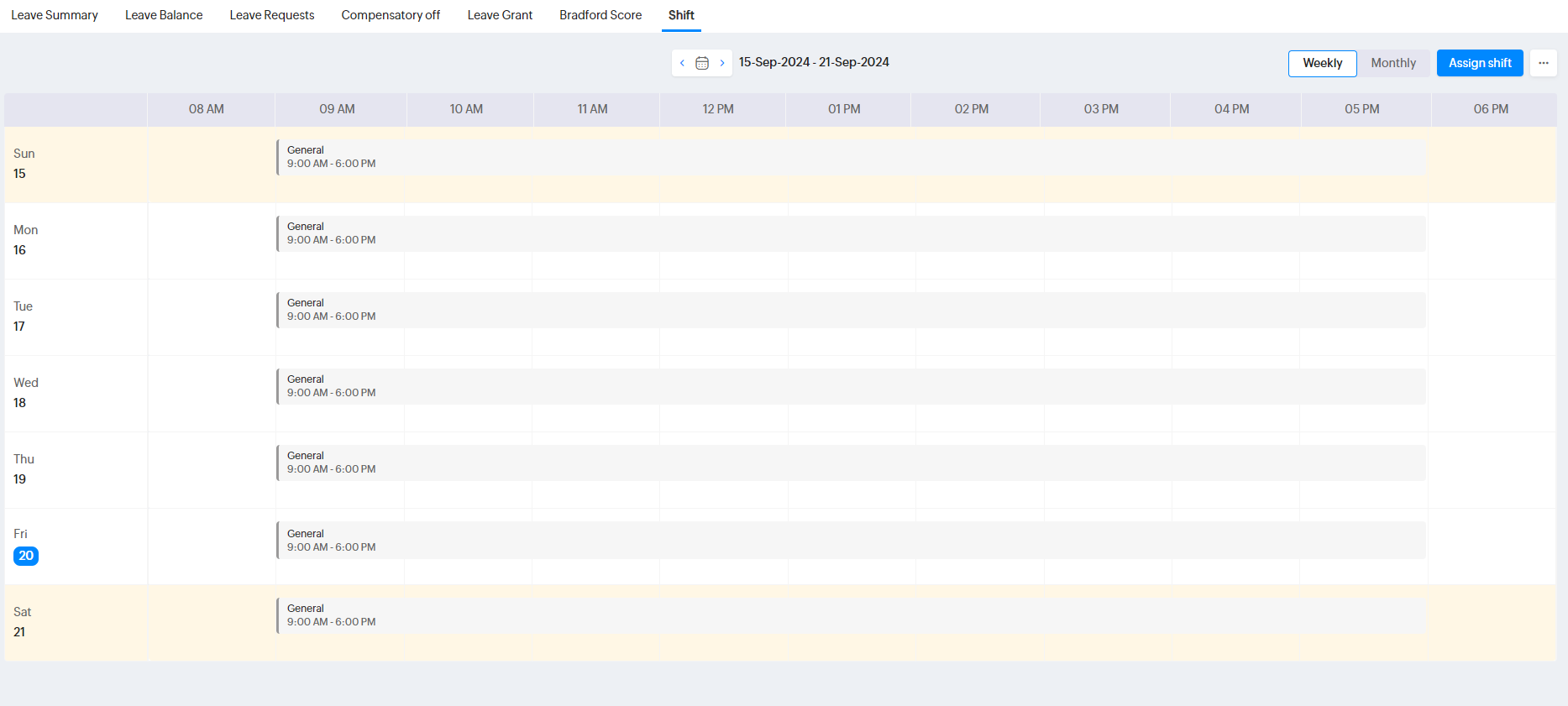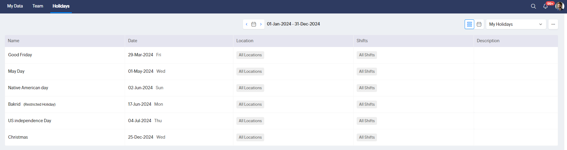 1. 従業員は、今後の休日や、さまざまな場所やシフトに特有の休日を確認できます。