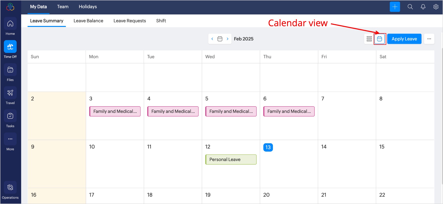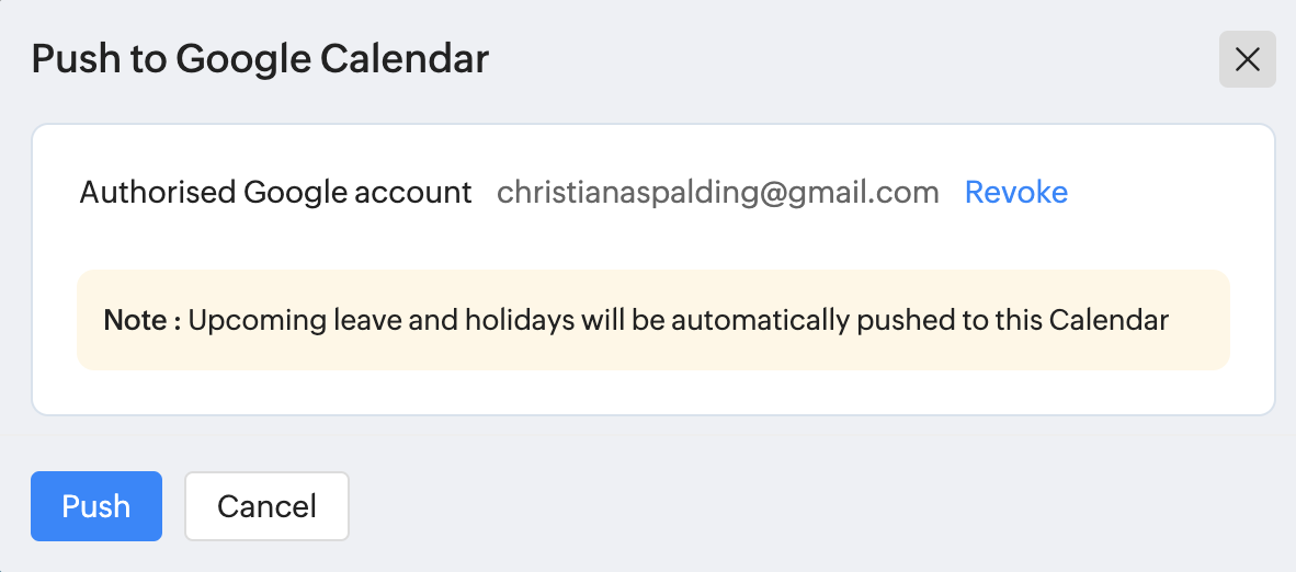 初期設定において、Zoho PeopleはZoho Calendarと連携されています。Zoho Calendarで、休暇と休日の情報を表示する設定を有効または無効にすると、Zoho Calendar内からZoho Peopleの休暇や休日を確認できるようになります。