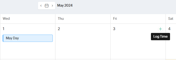 カレンダー表示では、データにカーソルを合わせると表示される[+](追加)アイコンをクリックすることで、工数の記録を追加できます。