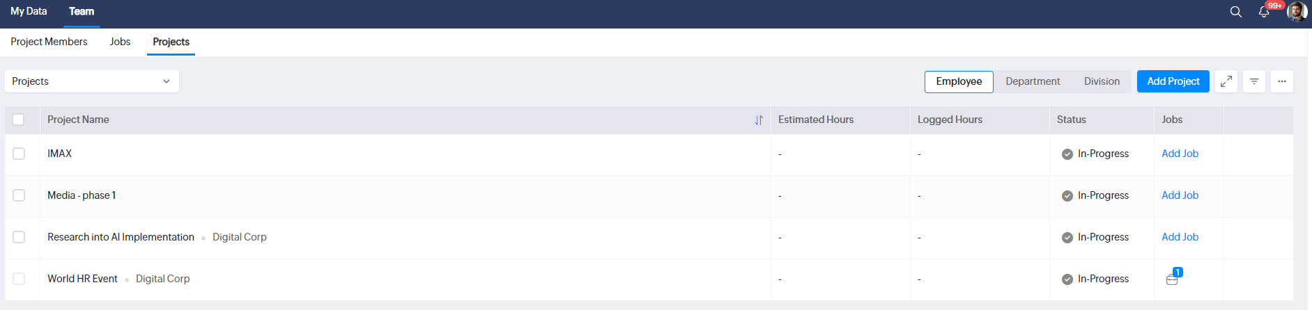 1. [工数の管理][自分のデータ][プロジェクト]に移動して、関連するプロジェクトを表示します。