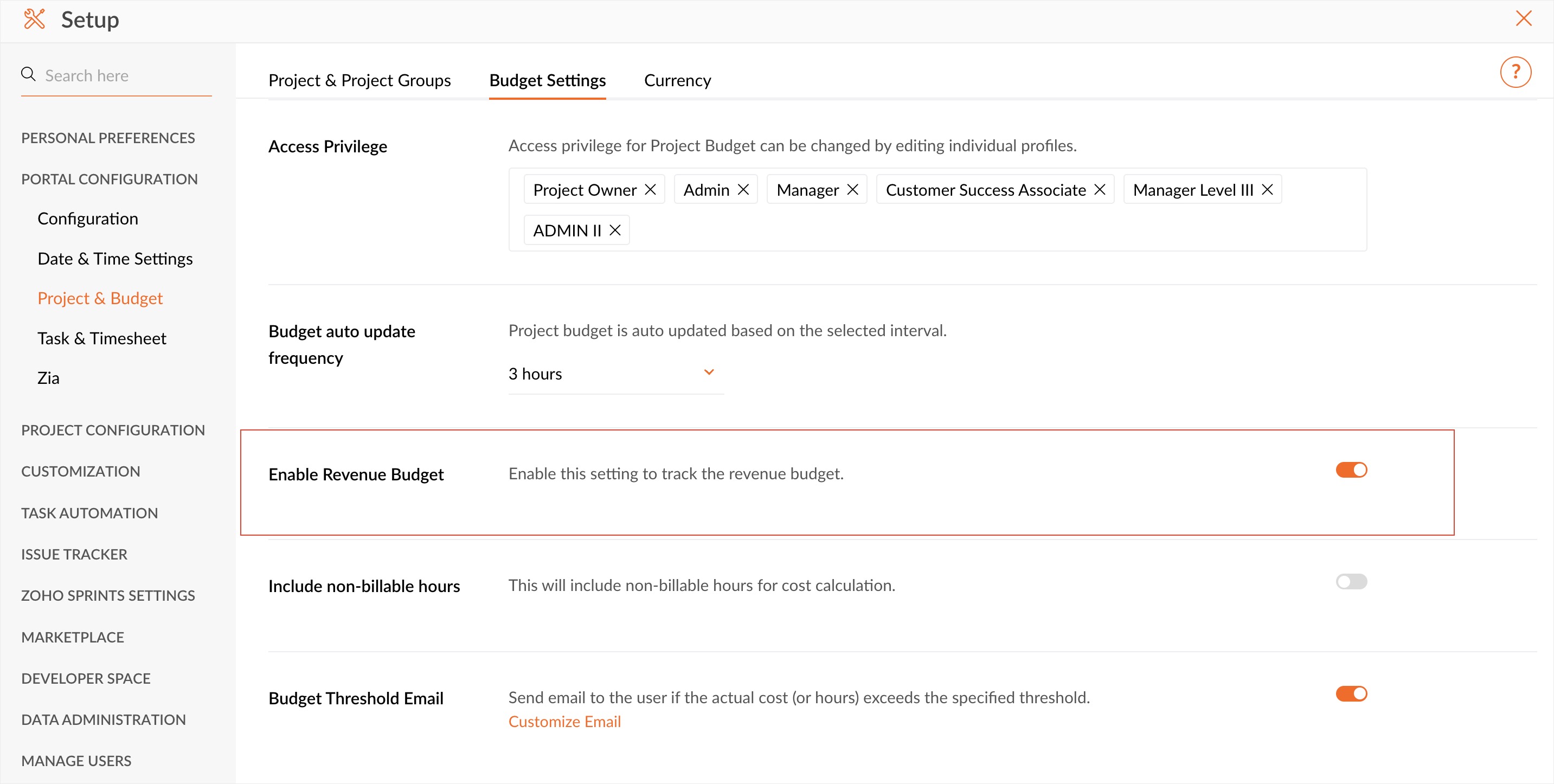 お知らせ:当社は、お客様により充実したサポート情報を迅速に提供するため、本ページのコンテンツは機械翻訳を用いて日本語に翻訳しています。正確かつ最新のサポート情報をご覧いただくには、本内容の英語版を参照してください。 Zohoプロジェクトでは、ユーザーはプロジェクトの各段階に特定の予算を割り当てることができます。これにより、プロジェクトの各主要な段階または目標に関連するコストの監視と管理が容易になります。 利点 プロジェクト内の特定の段階での支出を管理します。 ...
