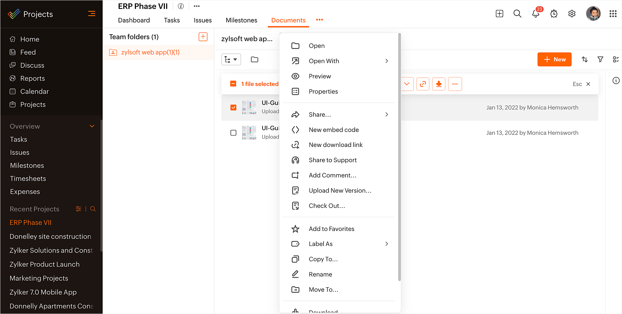 - サポートチームに共有する:ファイルをZoho WorkDriveのサポートチームに直接共有します。