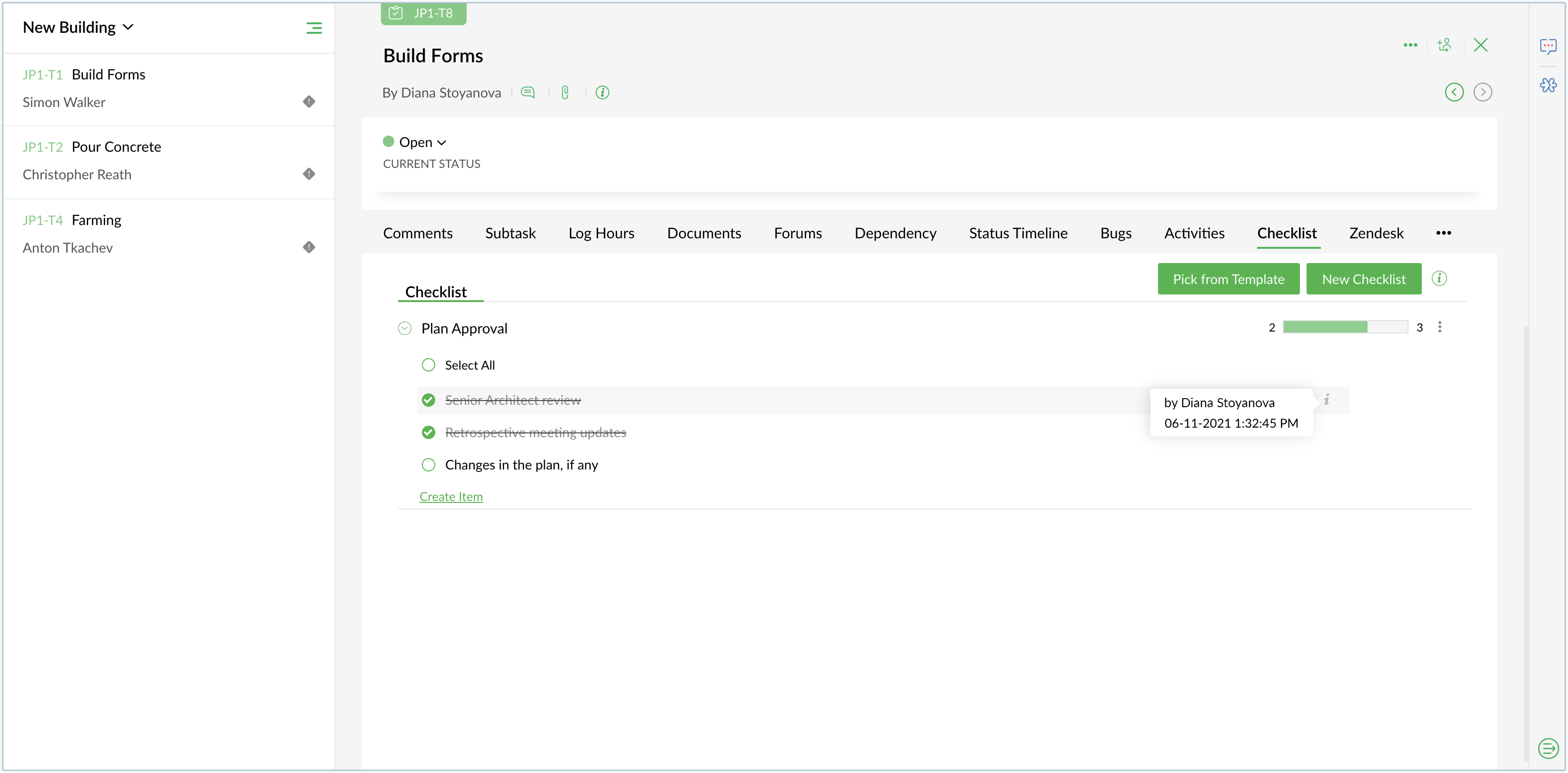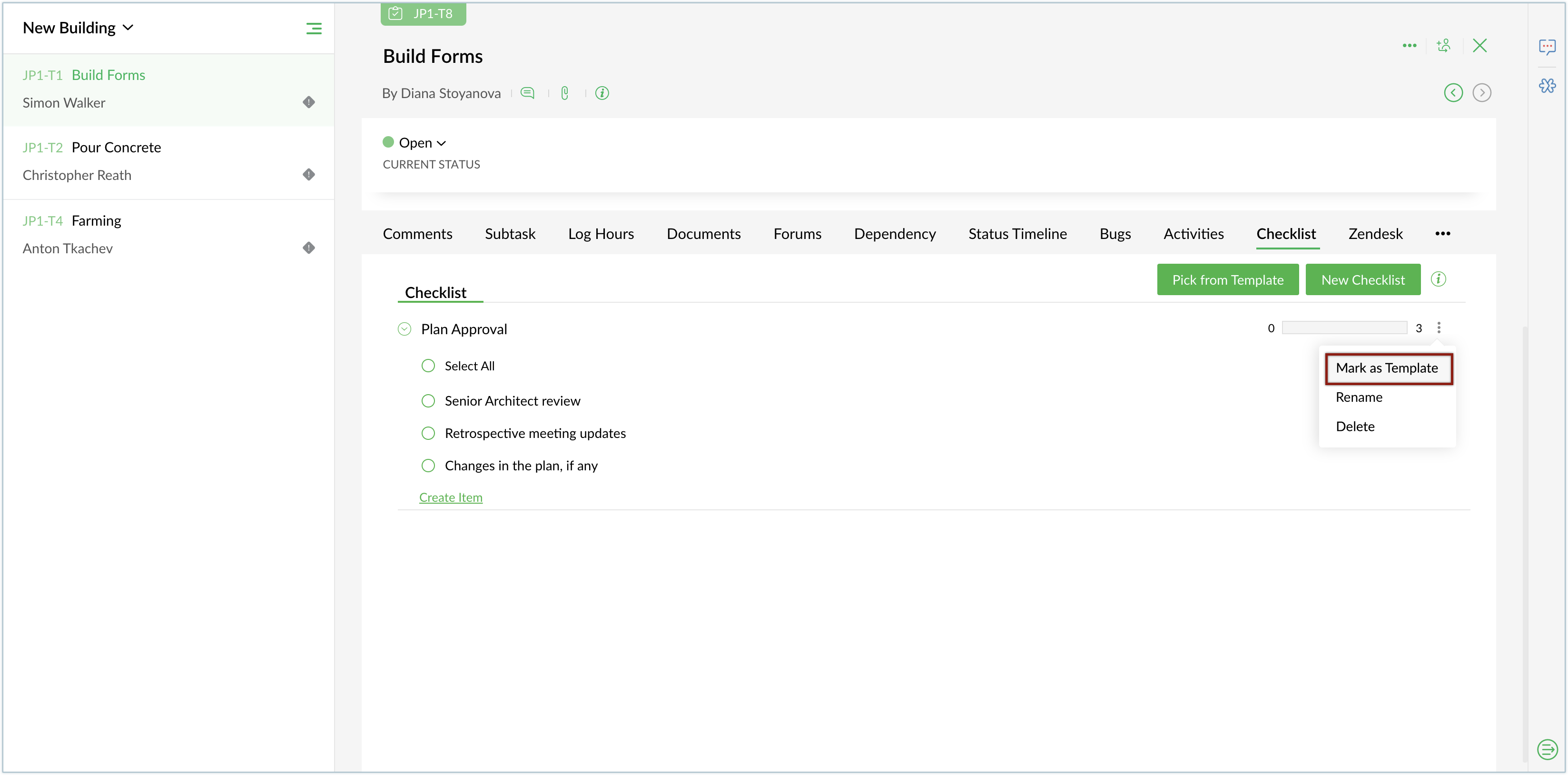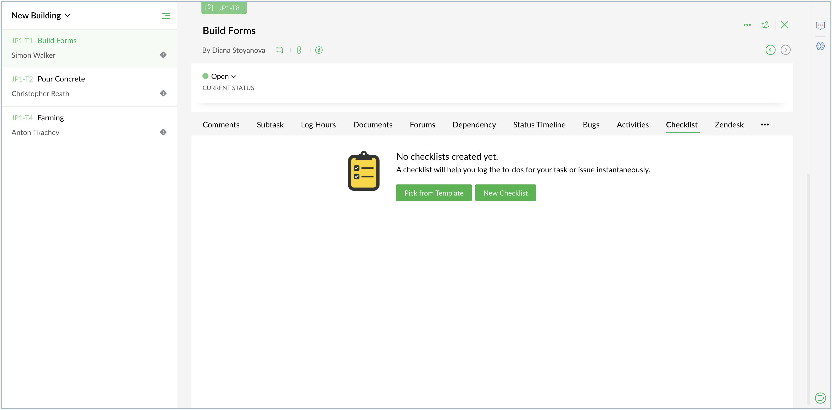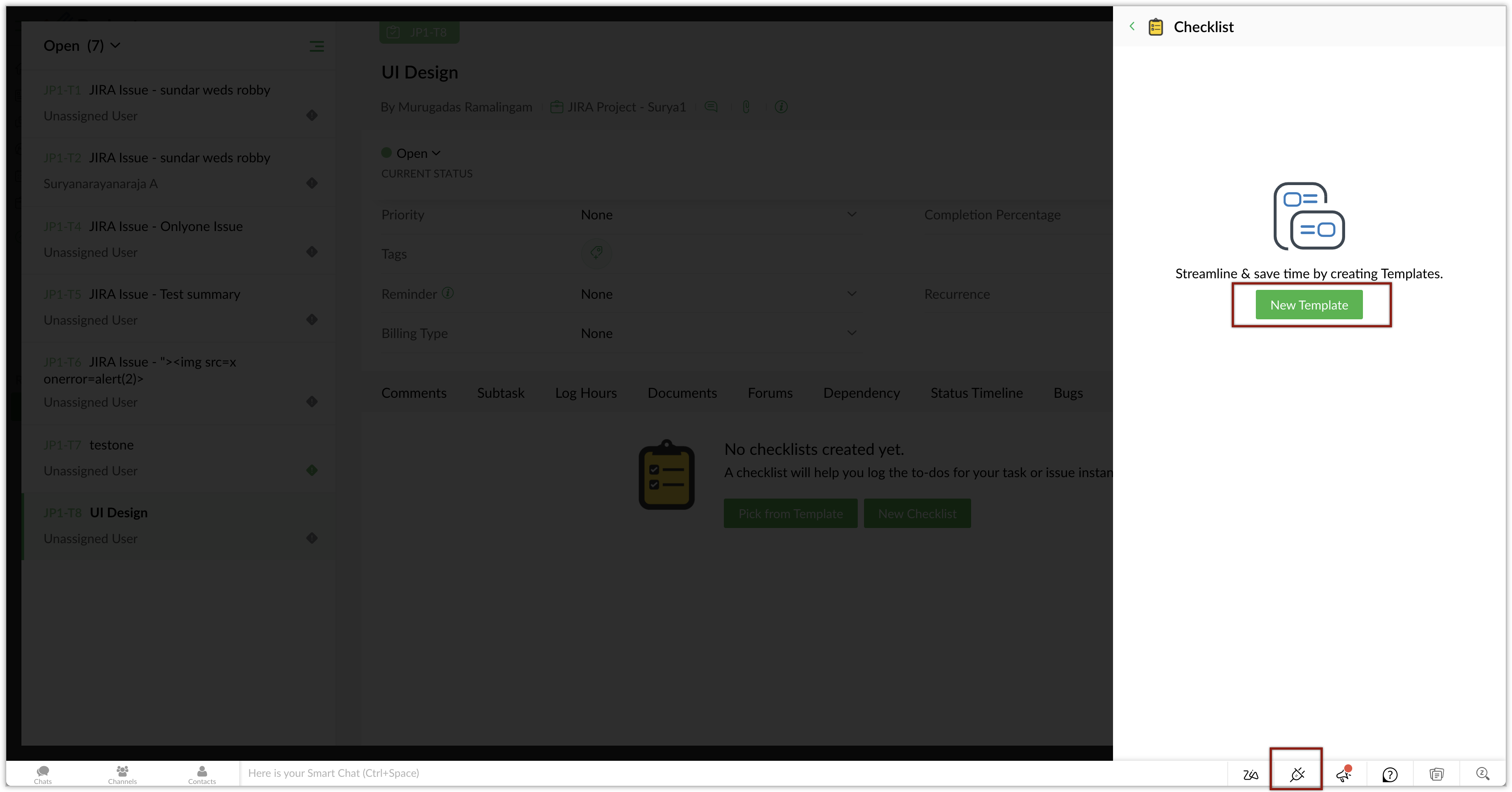 Zoho ProjectsのChecklist(チェックリスト)拡張機能 を使用すると、Zoho Projects内のタスクや課題用に、一連のToDoリストをすぐに作成できます。この拡張機能を使用すると、タスクや課題に関するチェックリストをすぐに作成できます。チェックリストのテンプレートを活用することで、繰り返し行う作業をすぐにリスト化でき、時間を節約できます。また、既存のチェックリストを新しいテンプレートとして設定して、活用することもできます。