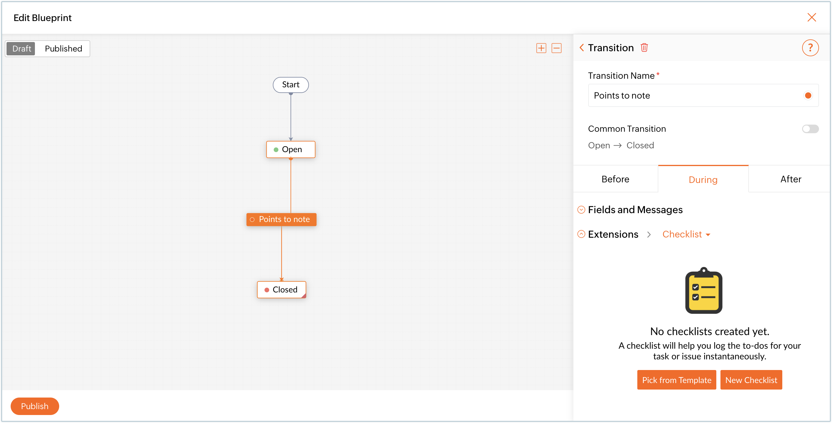 ブループリントにおいて遷移を設定する際、[遷移中]の処理の1つとして、チェックリストを利用できます。