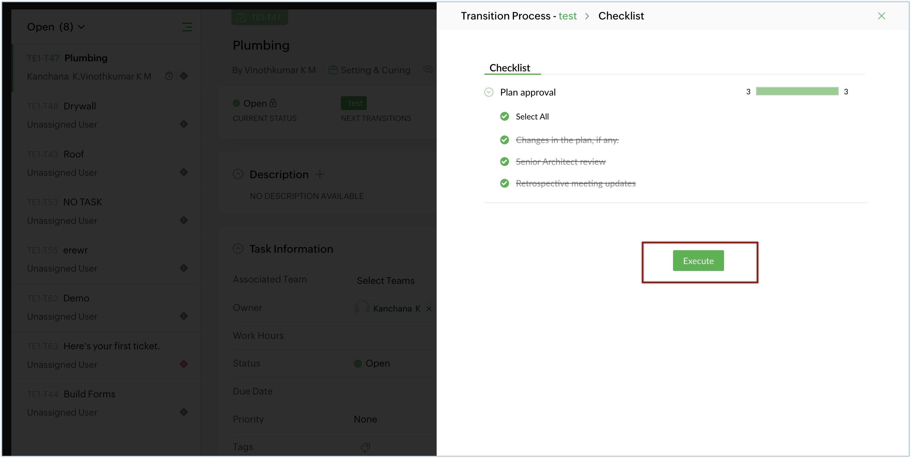 2. チェックリストの内容(チェック項目)をすべて完了にし、[Execute](実行する)ボタンをクリックします。