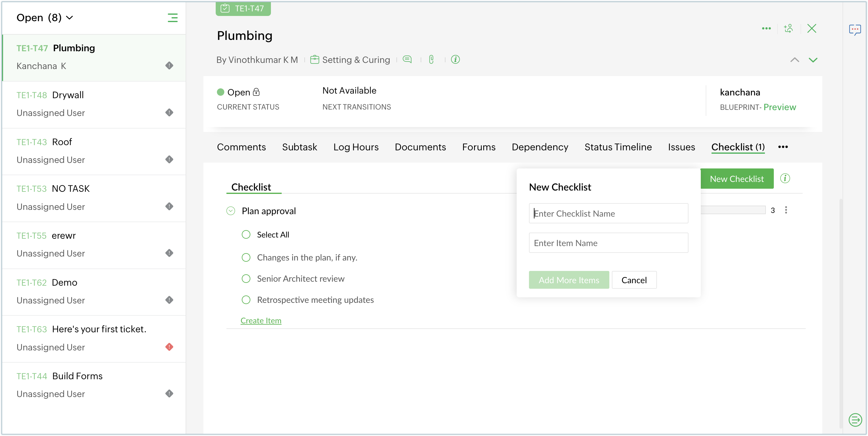 2. [New Checklist] (新しいチェックリストを作成する)をクリックした場合、チェックリスト名を入力してから、 Add more items (さらに項目を追加する)をクリックします。