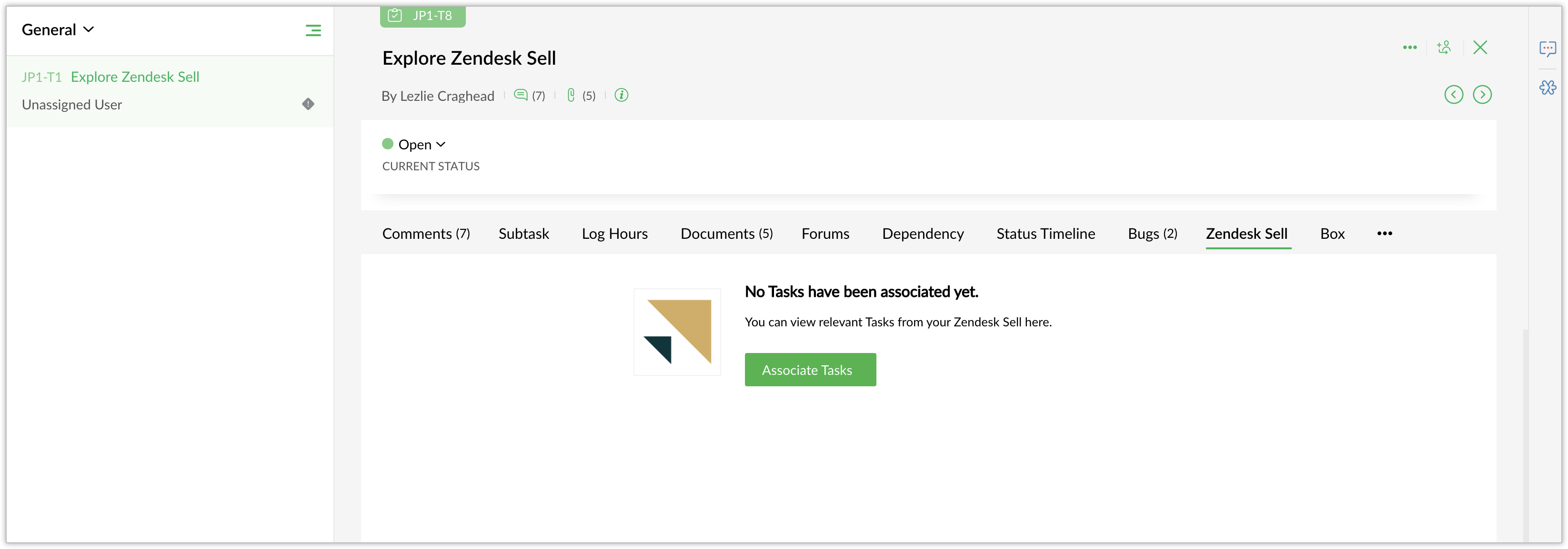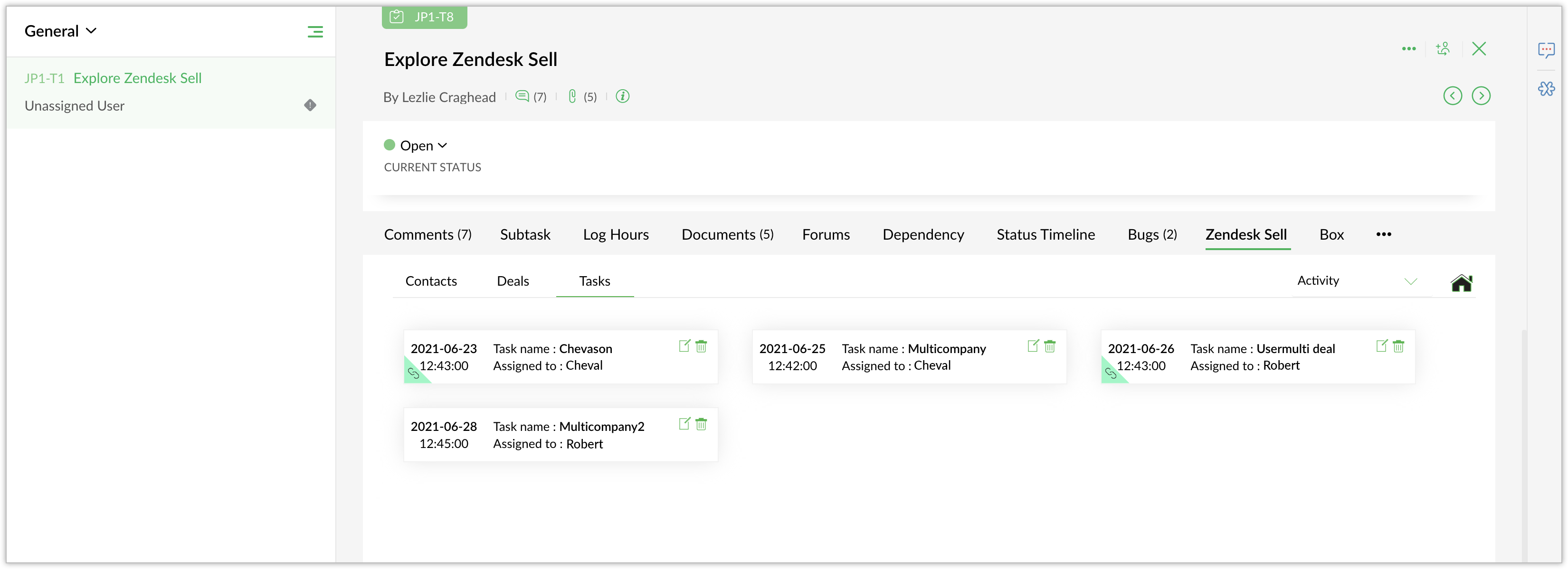 Zendesk SellのタスクをZoho Projectsのタスクに関連付けることができます。関連付けにより、タスクの完了までの進捗管理が簡単になります。