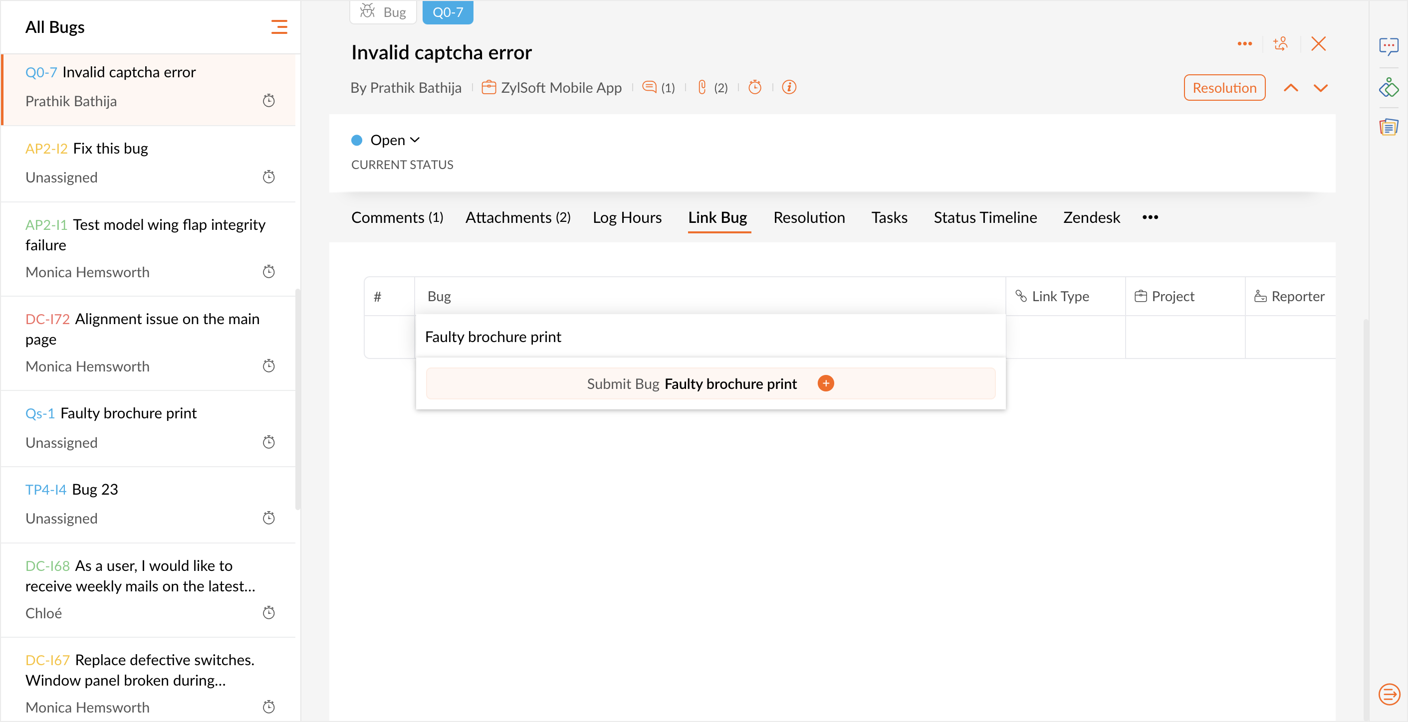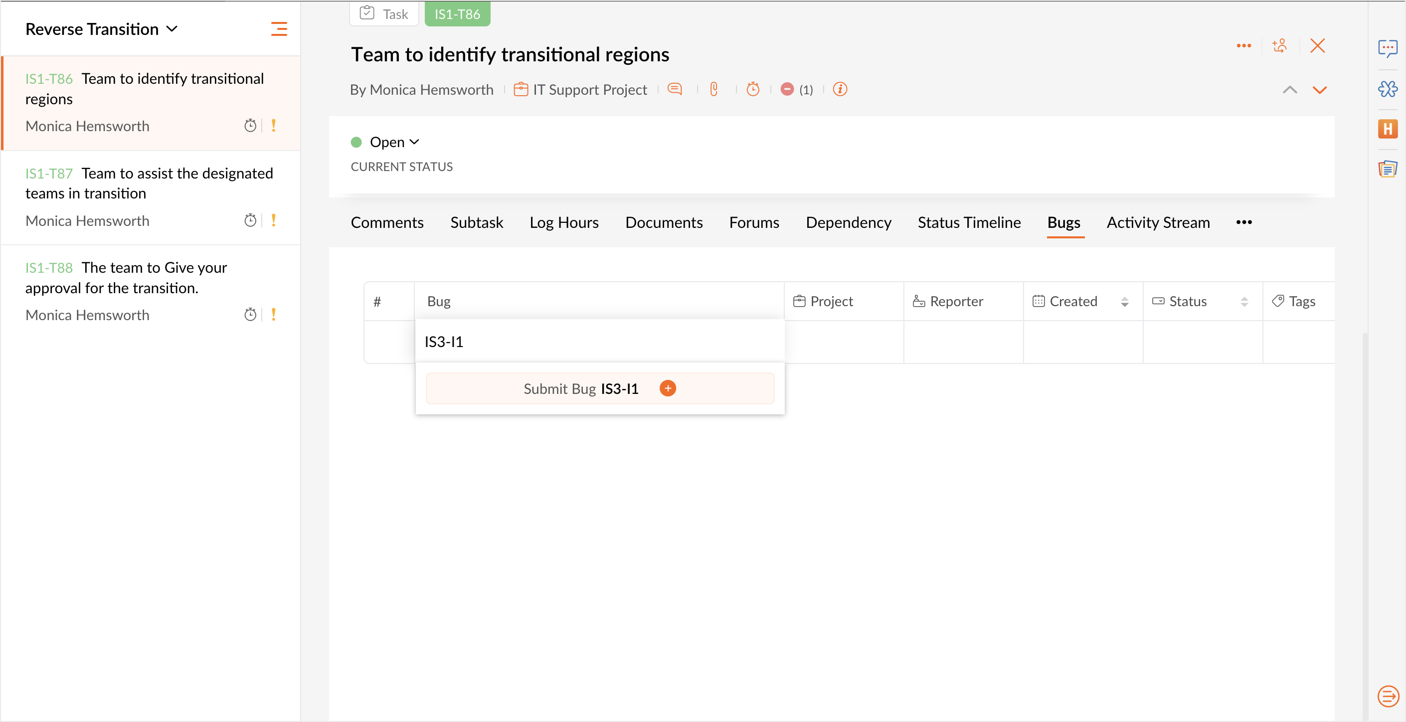 さらに、選択済みタスクに新しい問題をリンクすることもできます。問題タブで関連付けるIssuesをクリックし、次にクリックhereオプションをクリックして、タスクに新しい問題を関連付けます。新しいIssue件名とIssue説明を入力してから、保存をクリックして、タスクに新しい問題をリンクします。