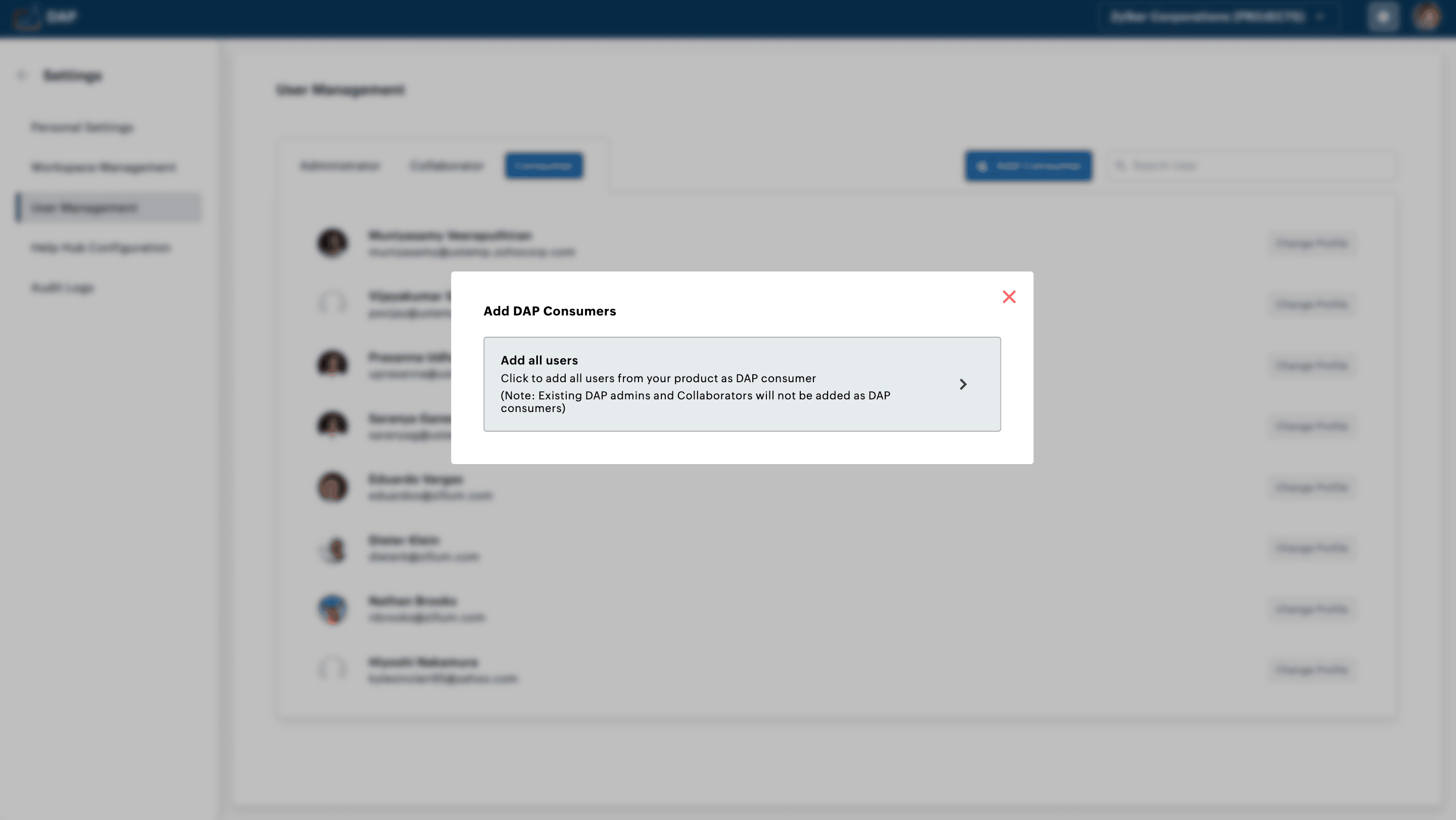 - すべての商品管理者を追加: 既存の Zoho プロジェクト管理者をすべて DAP 管理者として追加します。