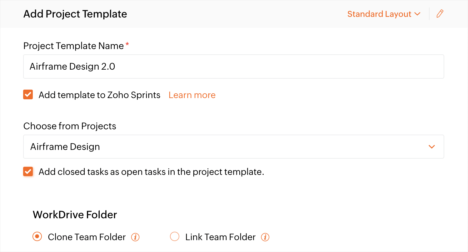プロジェクトにおける作業の進め方の手法や考え方にはさまざまなものがあります。ウォーターフォール型のように作業手順をあらかじめ詳細に定めて1つずつ順次進めていく形もあれば、アジャイル型のように短い期間で作業サイクルを反復しながら柔軟に作業を進めていく形もあります。プロジェクトの性格や方針に合わせて進め方や手法を工夫することで、より効率的かつ効果的にプロジェクトを管理できます。このような点において、Zoho Projectsと Zoho Sprints の連携機能が役立ちます。連携すると、それぞれの手法の良いところを活かしながらチームやプロジェクトのタスクを管理できます。