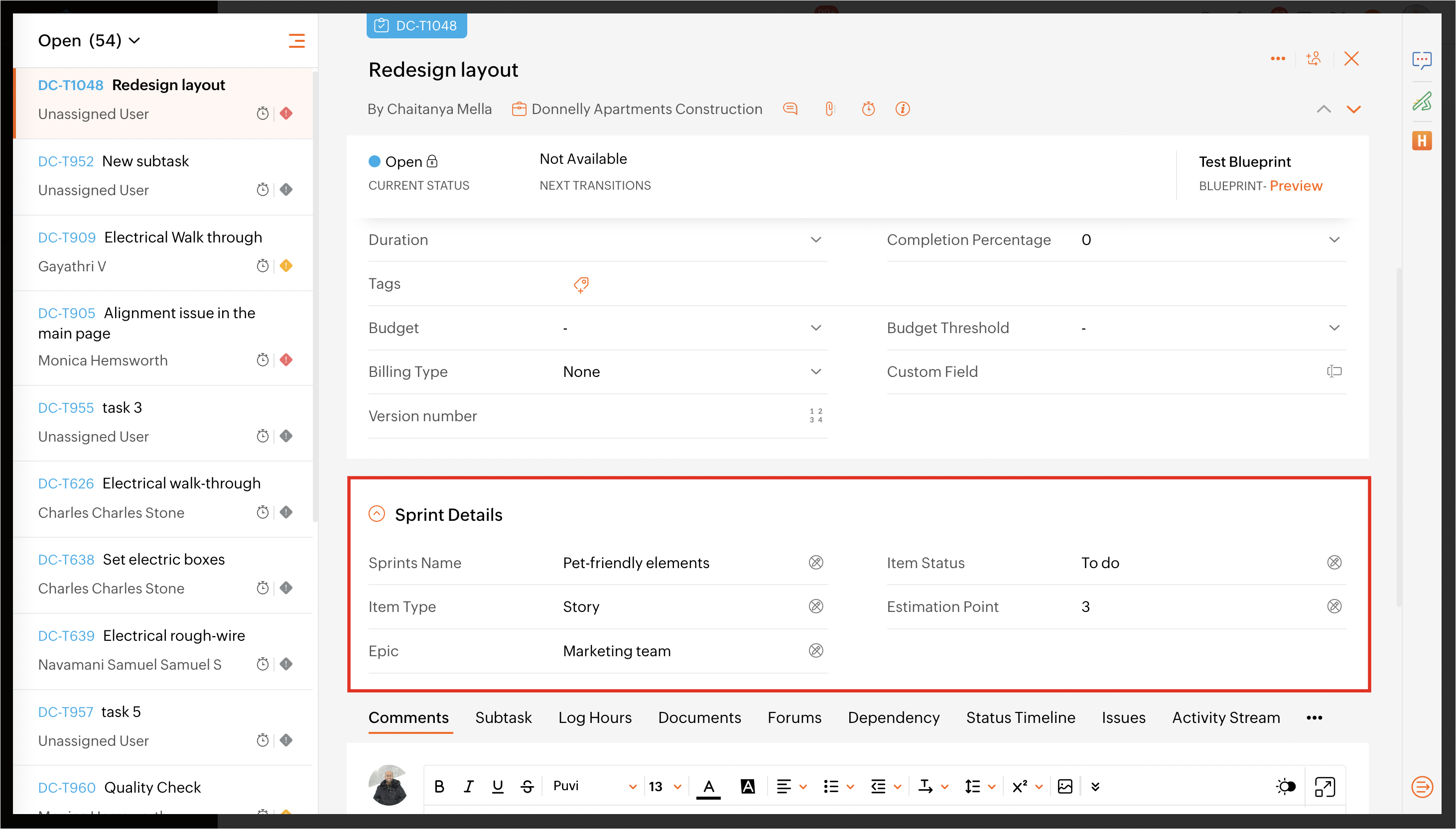 連携を設定すると、[スプリント]タブが画面上部に表示されます。