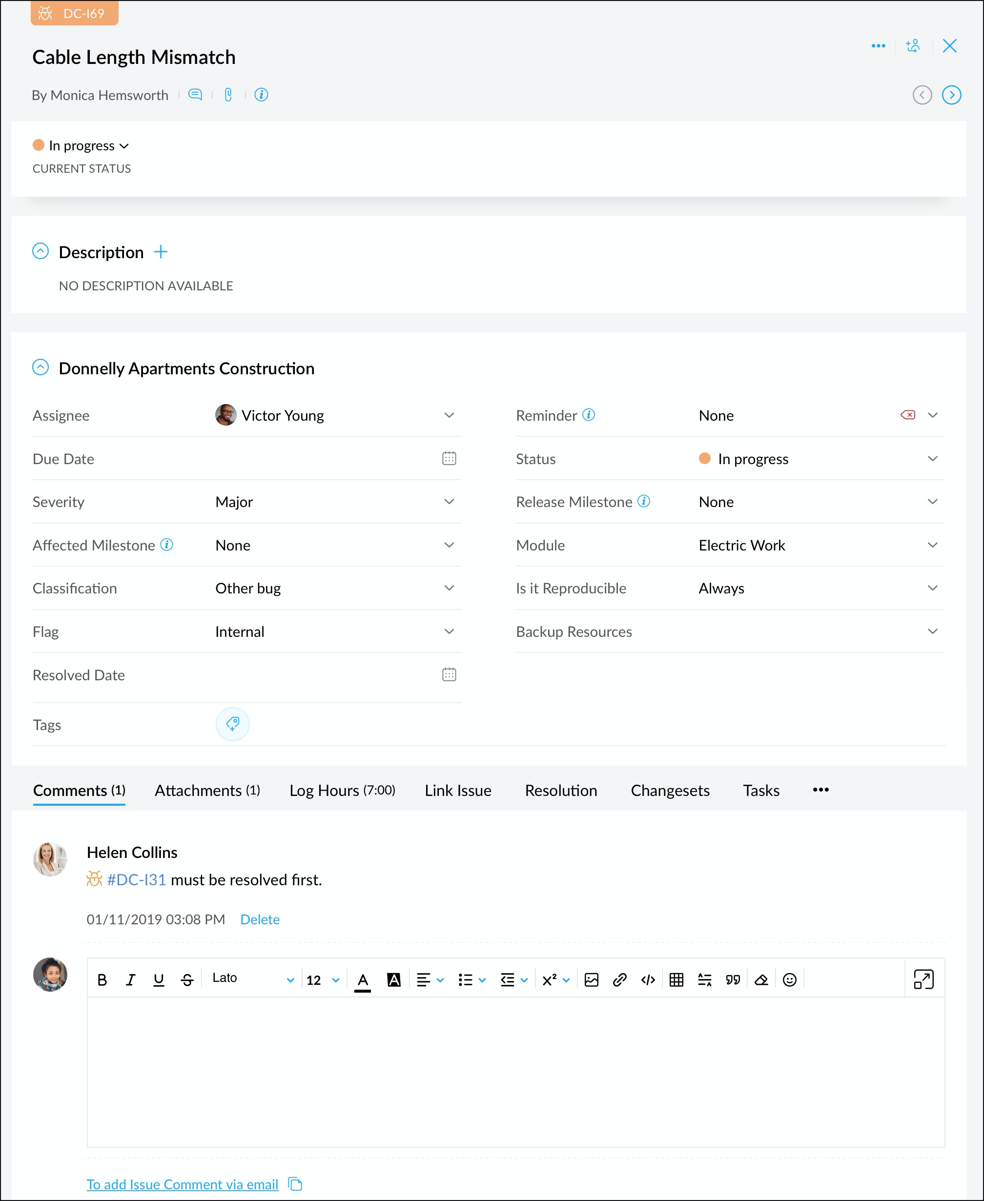 • 解決方法: このオプションを使用して、課題を解決できます。課題解決時に、添付ファイルやスクリーンショットを追加することもできます。