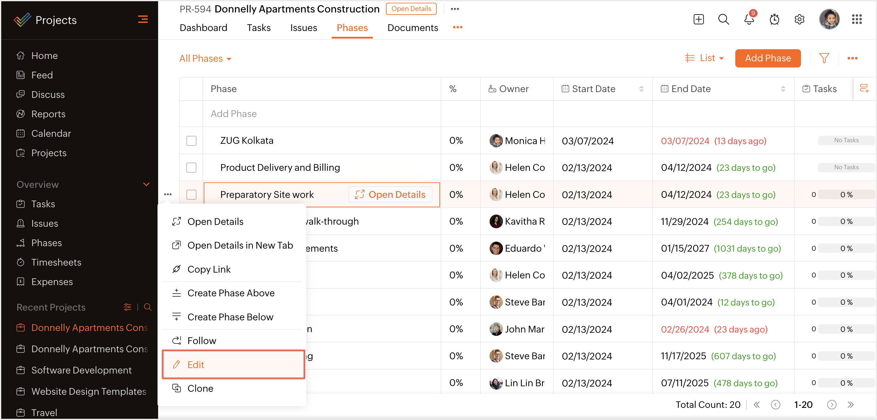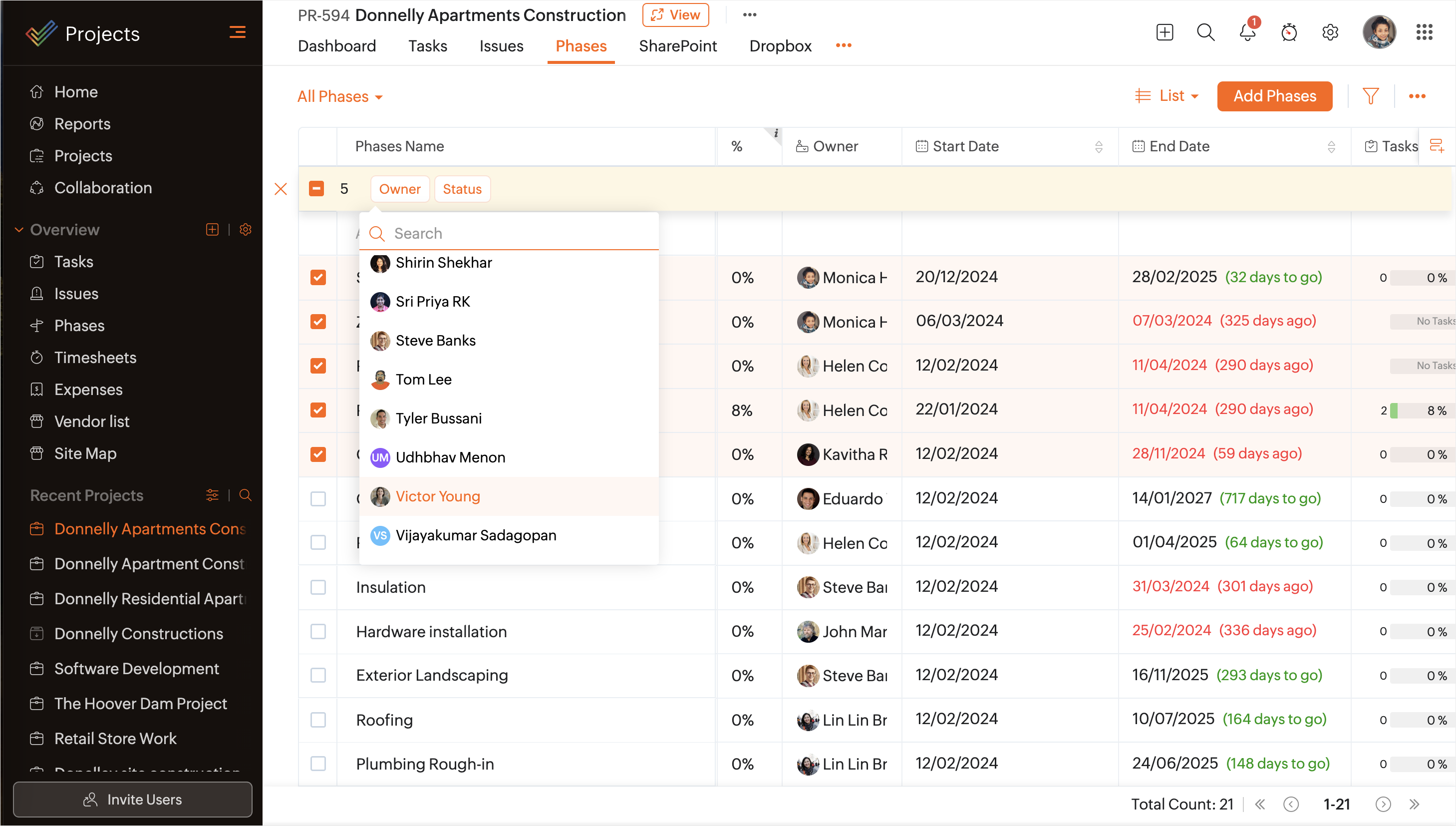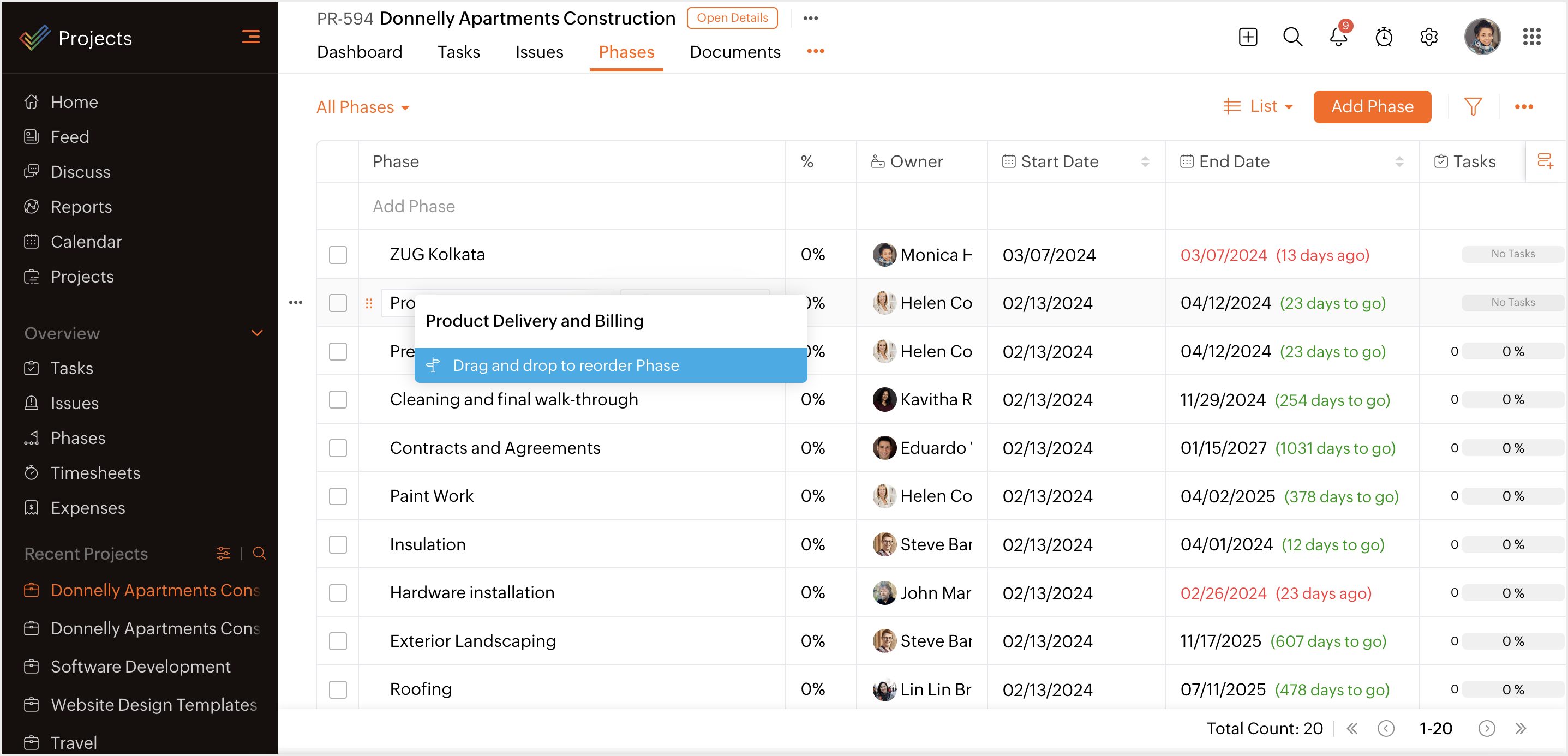 段階とは、プロジェクトにおける主な目標を表すものです。ユーザーは、プロジェクトを複数の段階に分けて、各段階の完了まで管理/追跡できます。