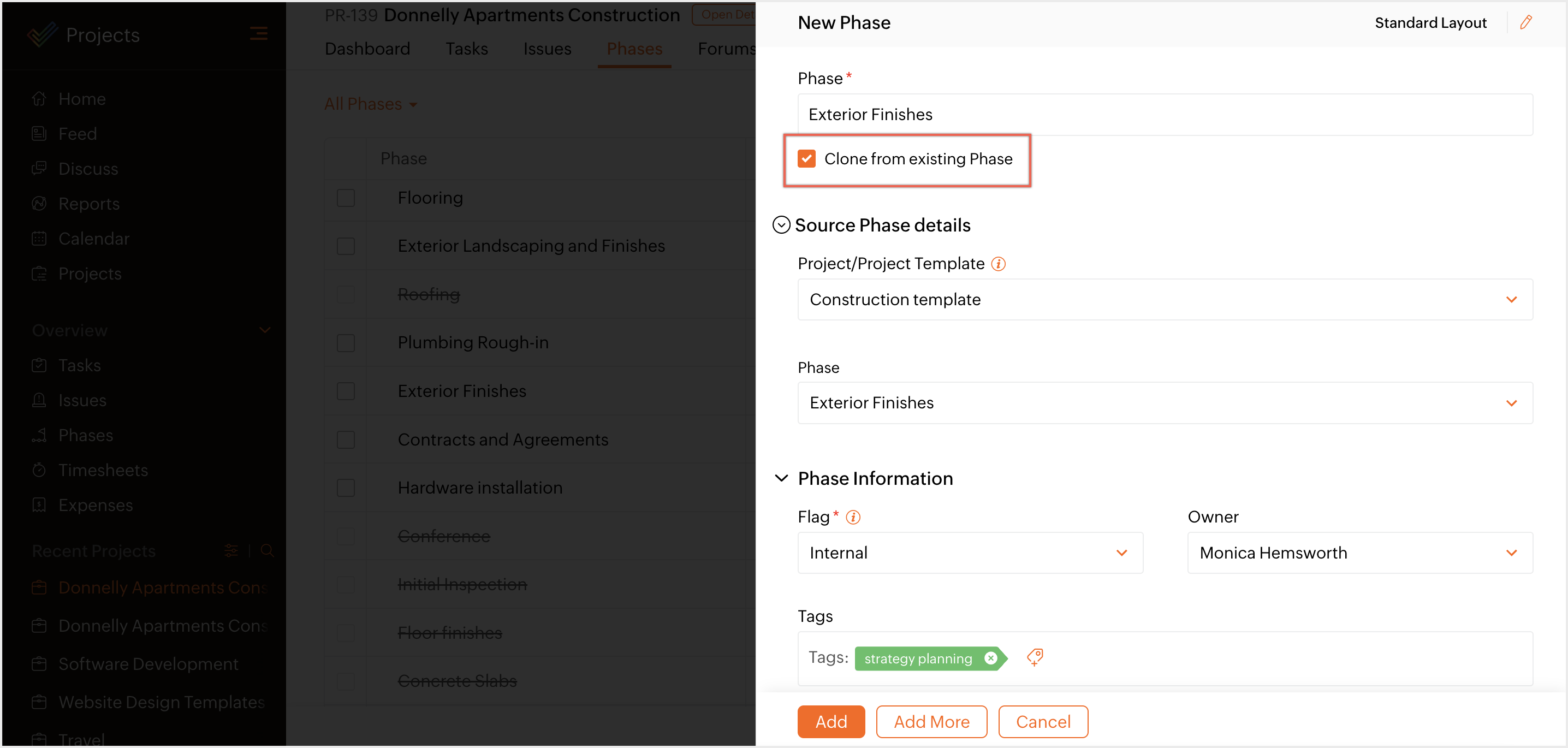段階を複製して、同じタスクリスト、リリースノート、コメント、項目を含む新しい段階を現在のプロジェクトや別のプロジェクトで作成できます。同じプロジェクト内で段階を複製することも、任意のプロジェクト/プロジェクトテンプレート内の段階を複製して、別のプロジェクトに追加することもできます。