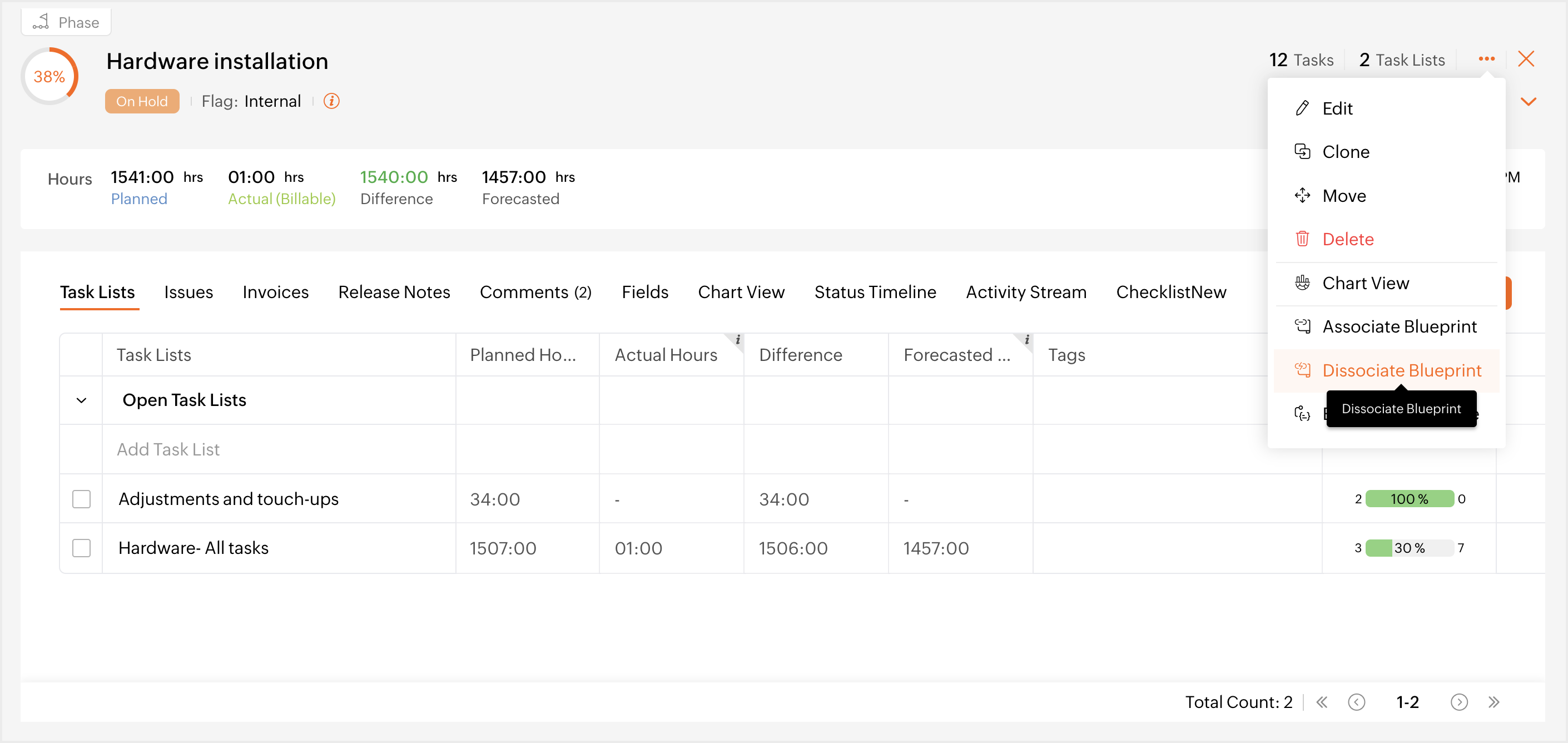 段階のタスクから、ブループリントの関連付けが解除されます。