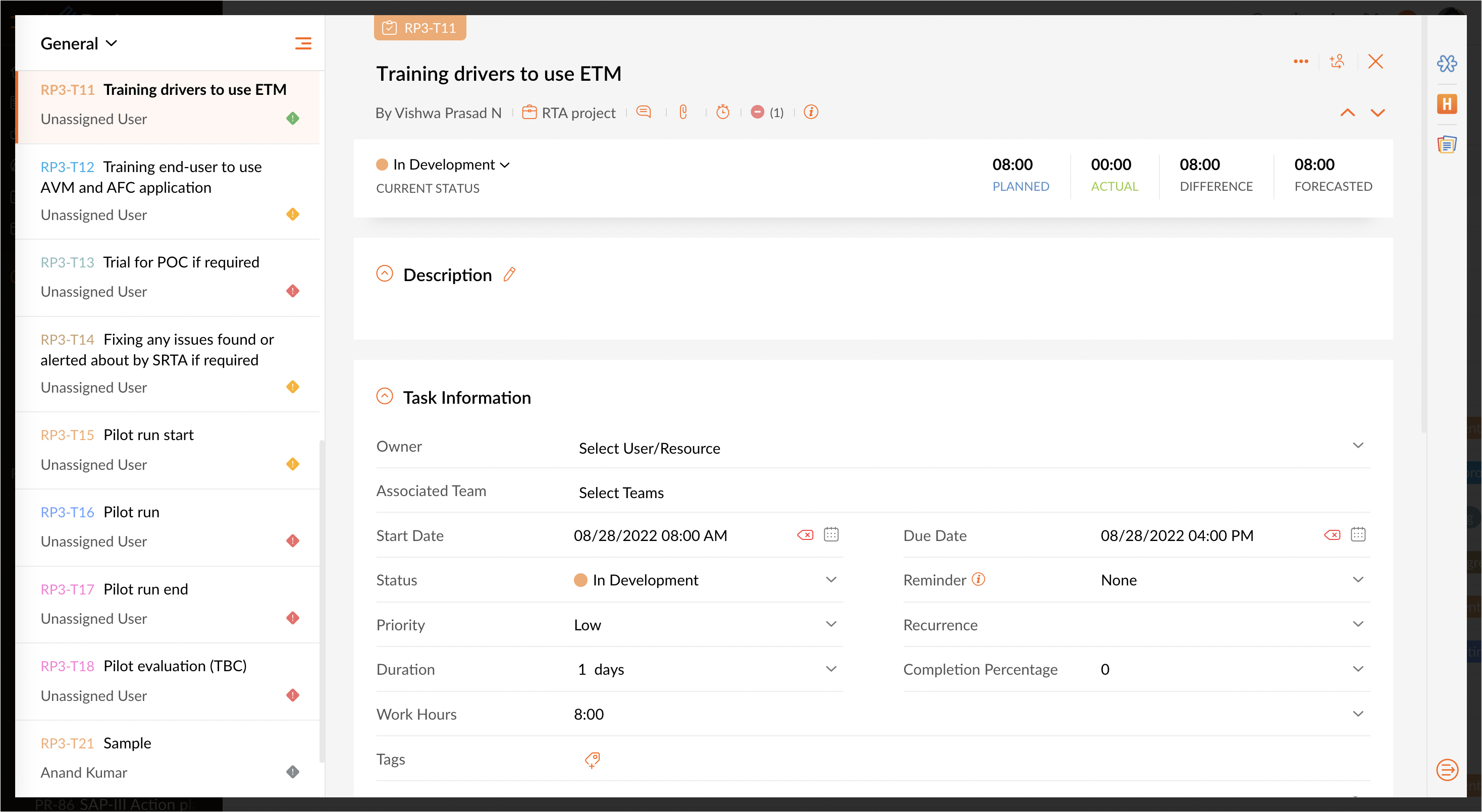 1. タスクをクリックして、詳細を表示します。また、項目の値を編集することもできます。