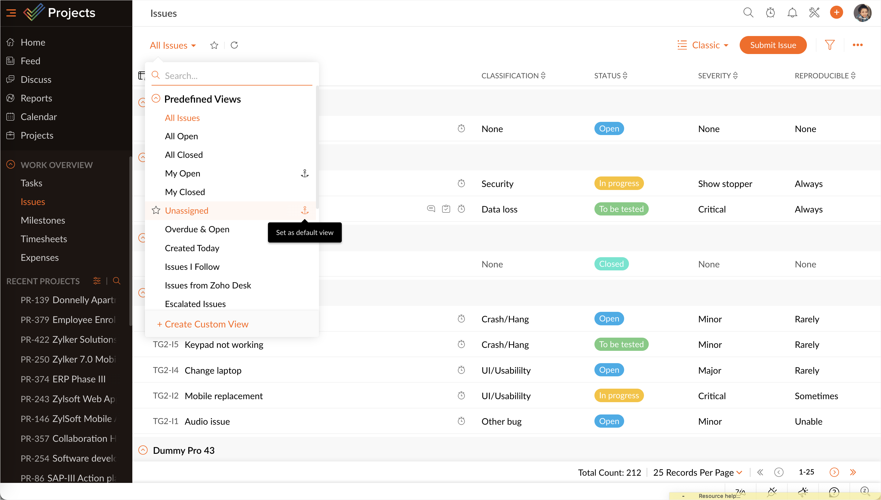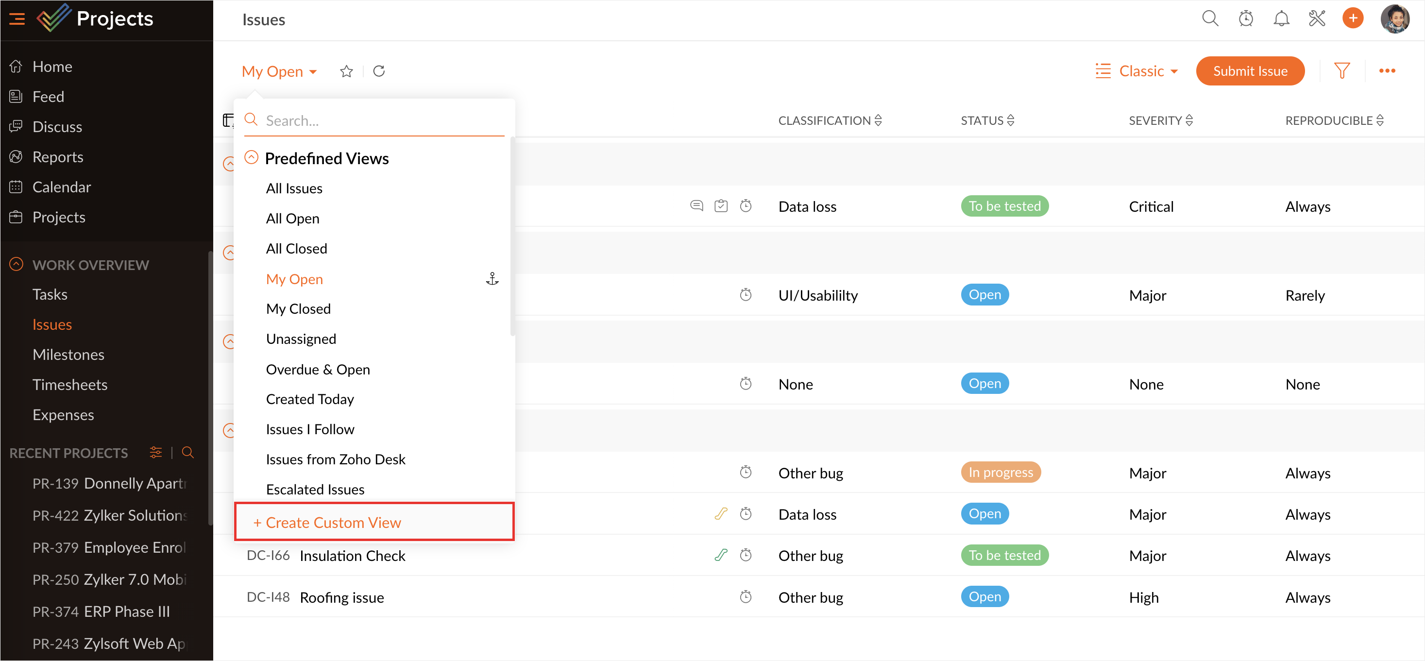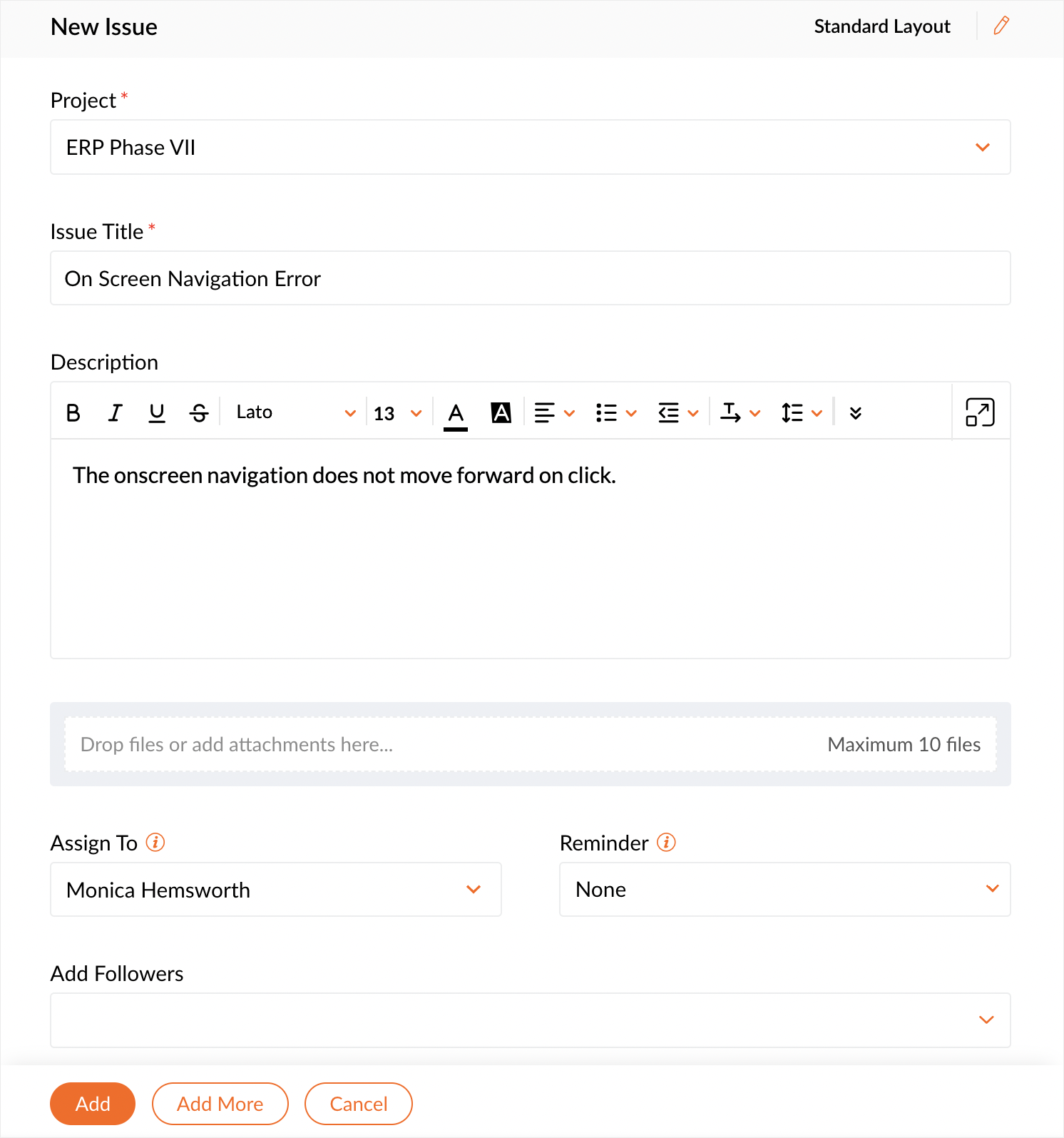 業務やプロジェクトの実施中、製品の不具合や不適切な材料が見つかったり、輸送時における部品や製品の紛失/破損が判明したりといったさまざまな課題が発生することがあります。その結果、納期や期限の超過、コストの増加、さらには顧客との信頼関係の損失といったさまざまな問題を引き起こす可能性があります。Zoho ...