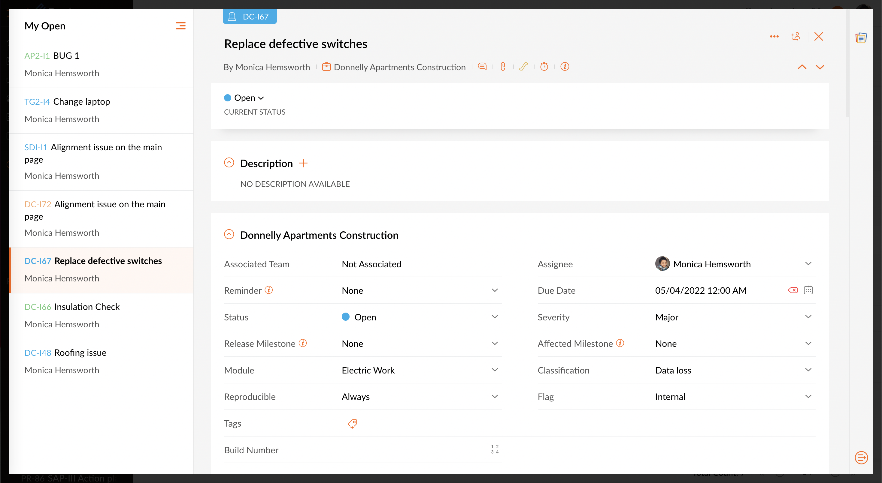 1. 対象の課題をクリックすると、課題の詳細を表示できます。また、項目の値を編集することもできます。