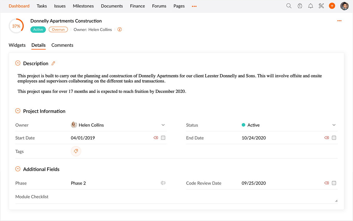ダッシュボードから、プロジェクトの詳細情報を編集したり、追加の項目を追加したりすることもできます。