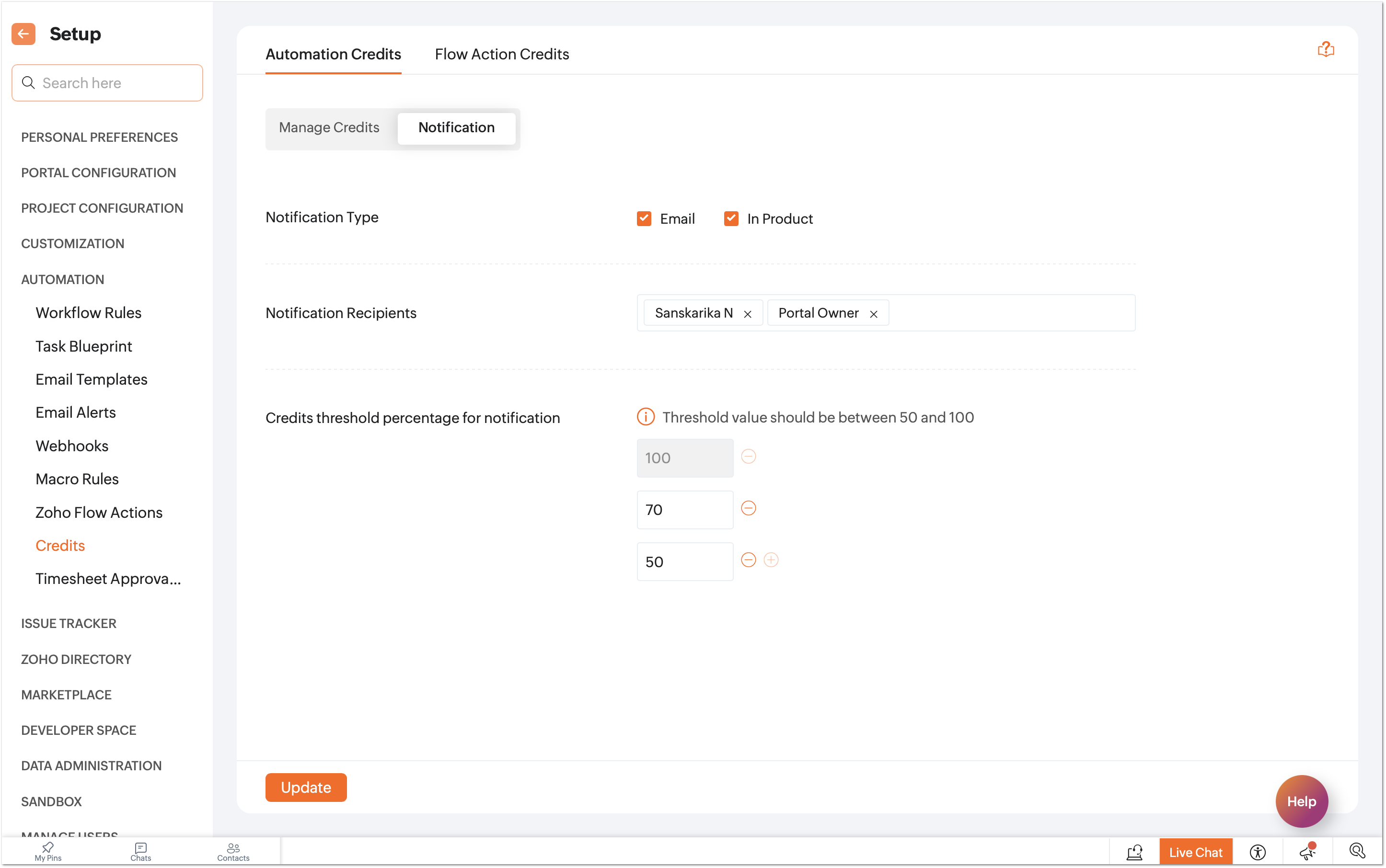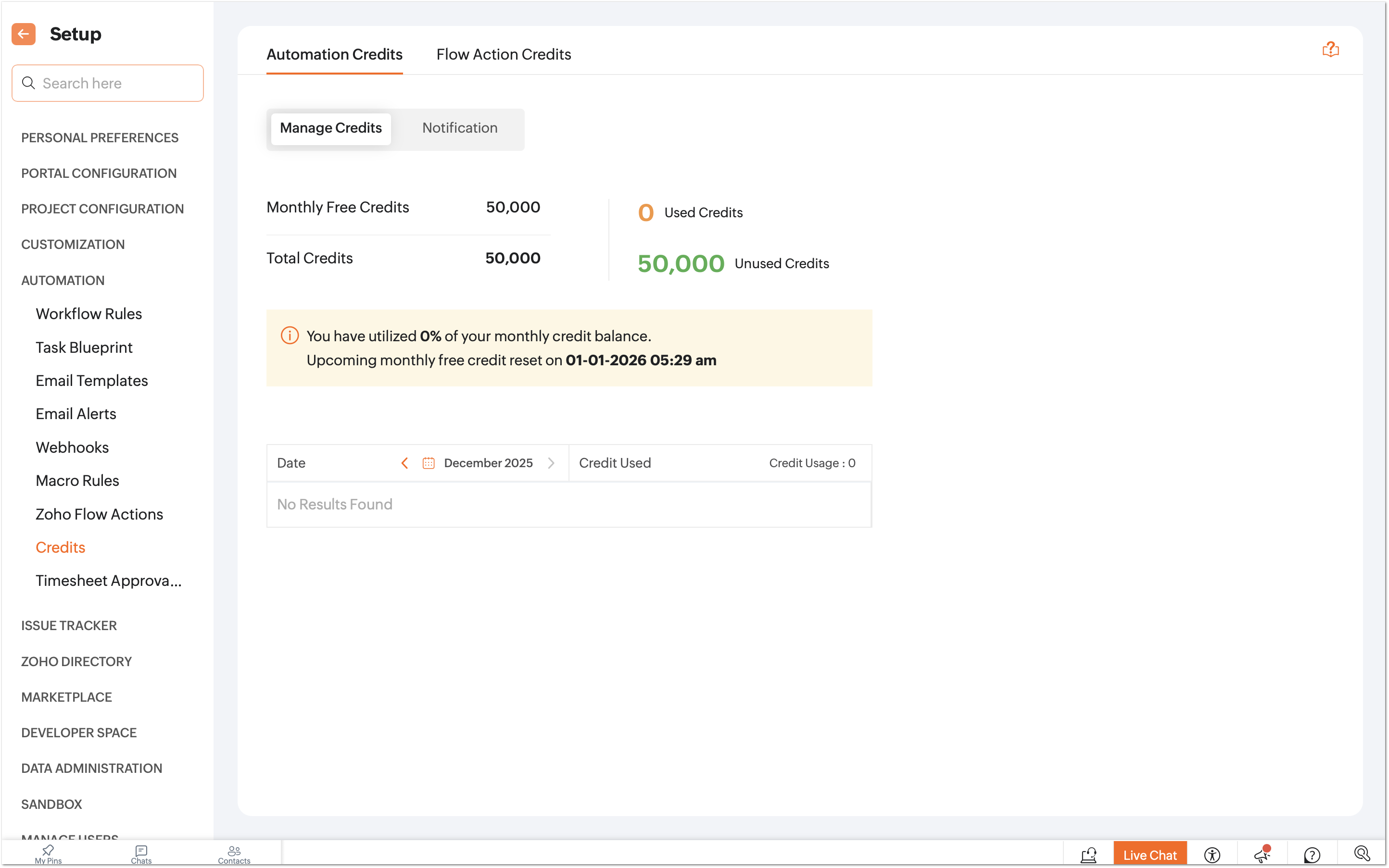 自動化クレジット(ワークフロールール、マクロルール、ブループリント、Webhook、スケジュール関数、カスタム関数)
