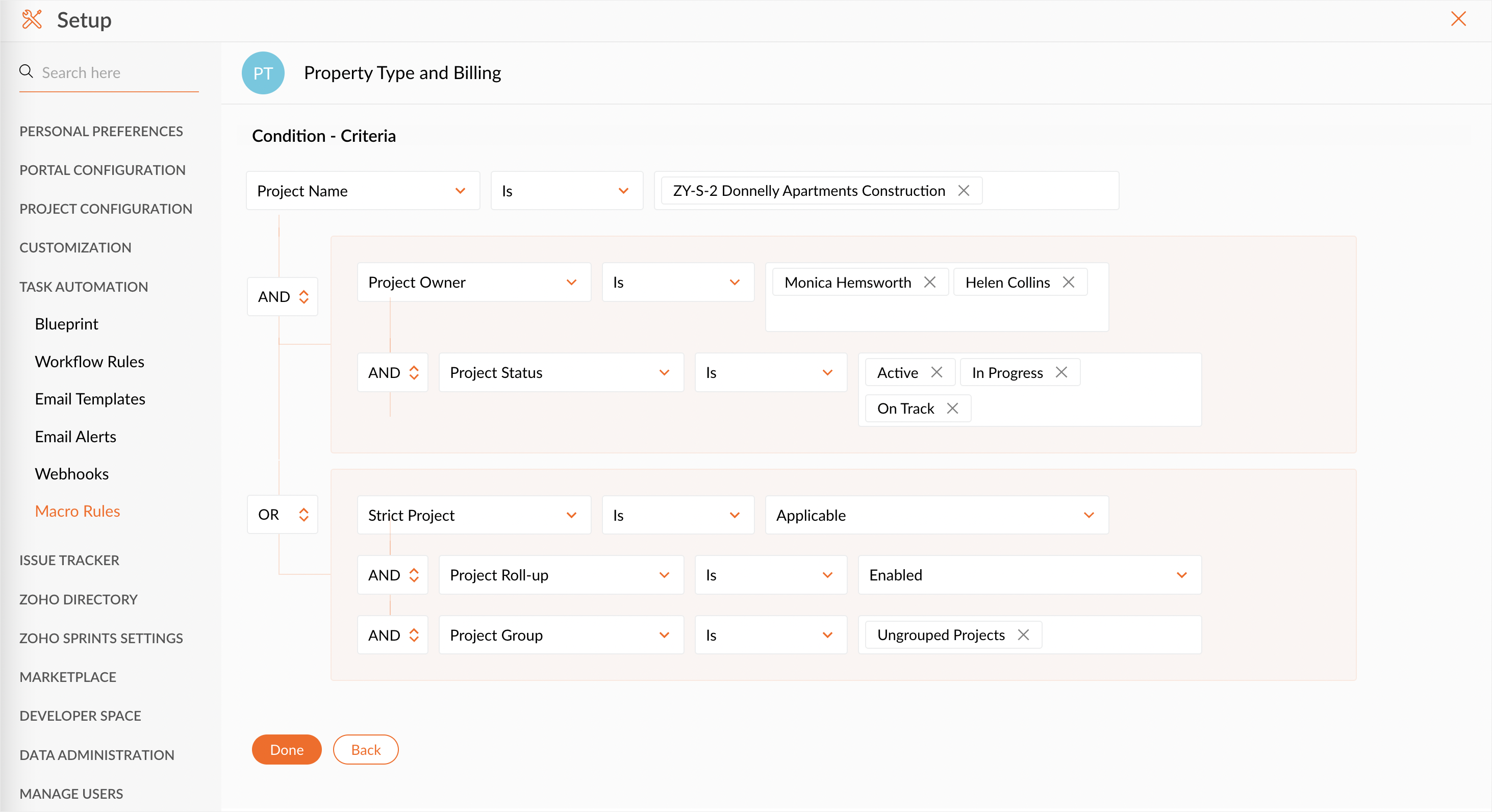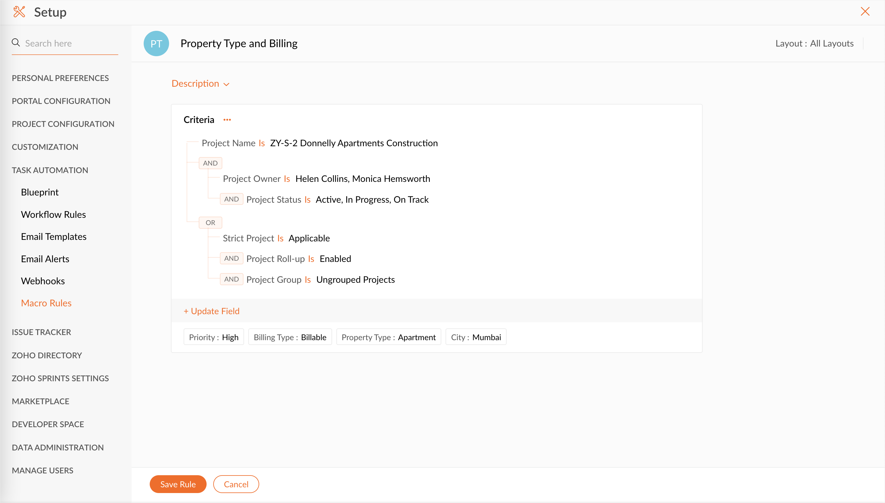 なお、マクロのルールによる処理は、選択したレイアウトに関連付けられているプロジェクトのタスクに対してのみ実行されます。