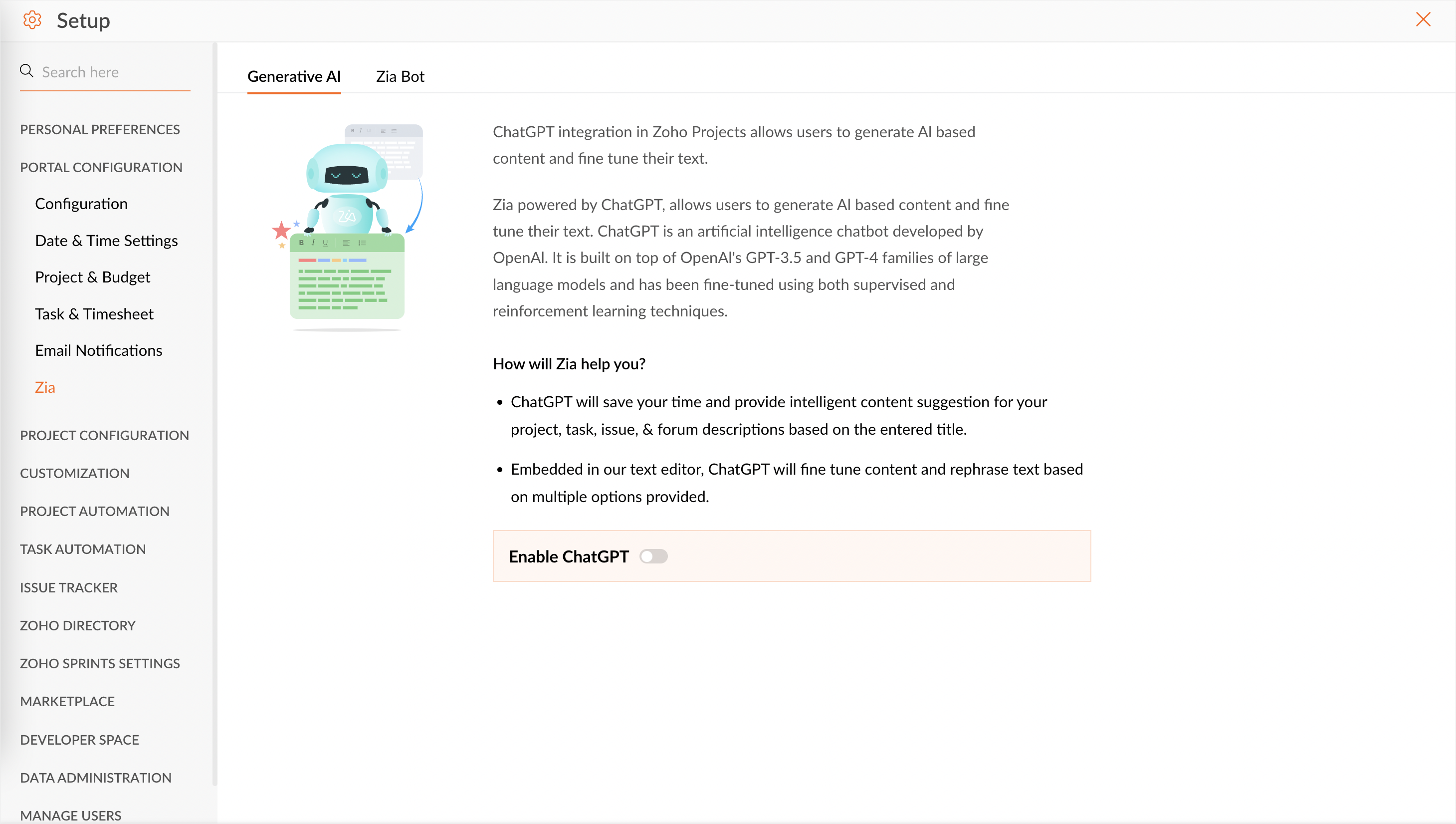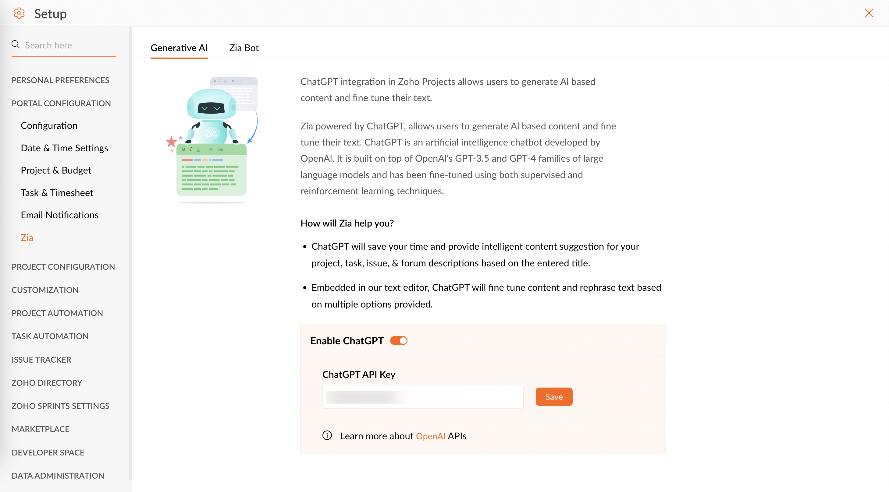 Zoho ProjectsにおけるZiaとChatGPTの連携