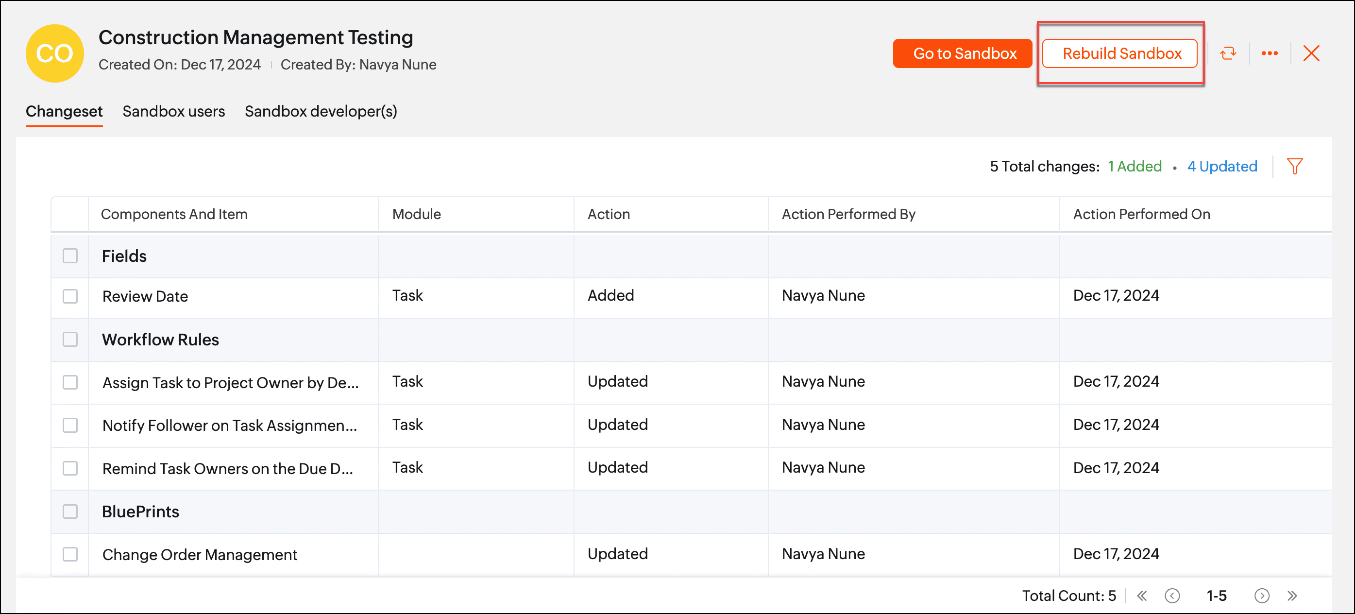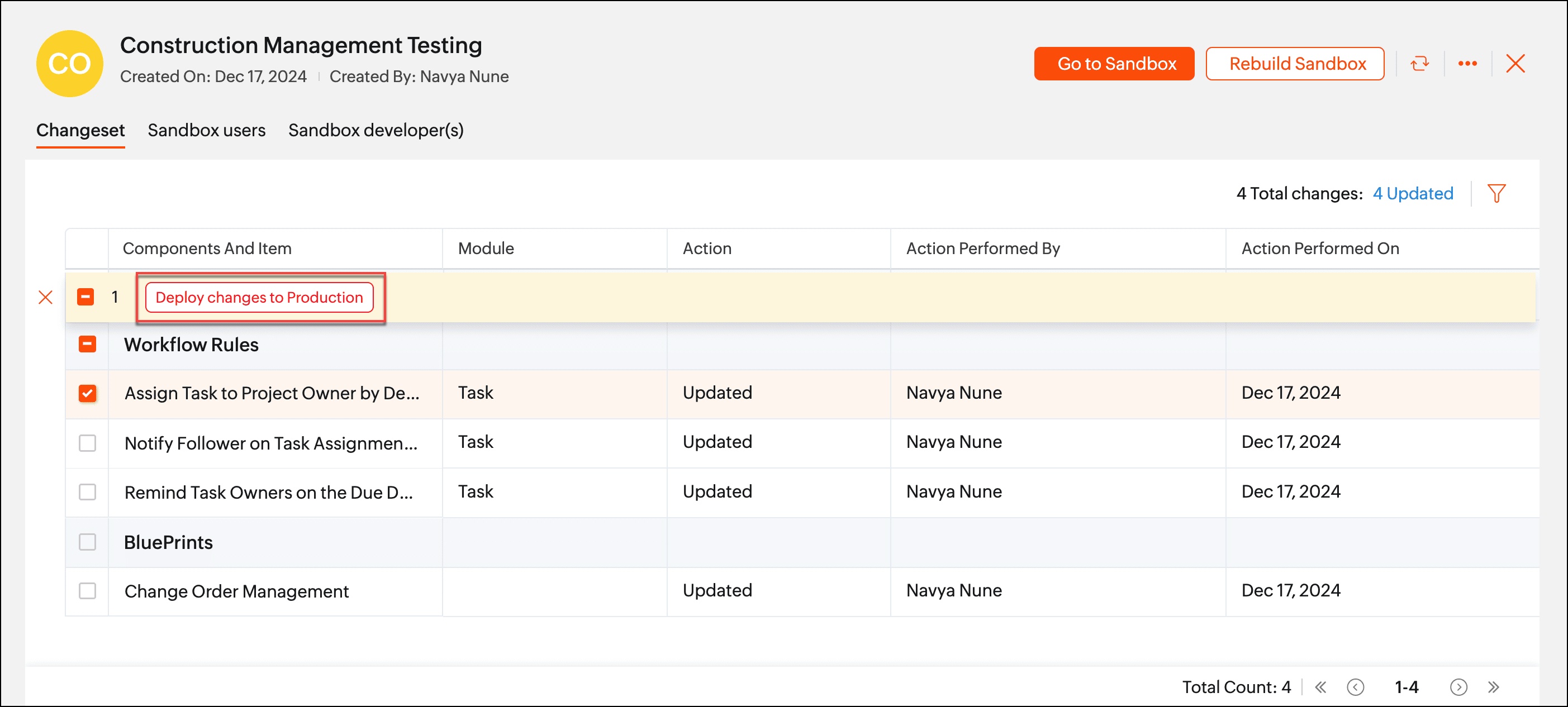 3. [サンドボックス][サンドボックスの変更内容]に移動します。