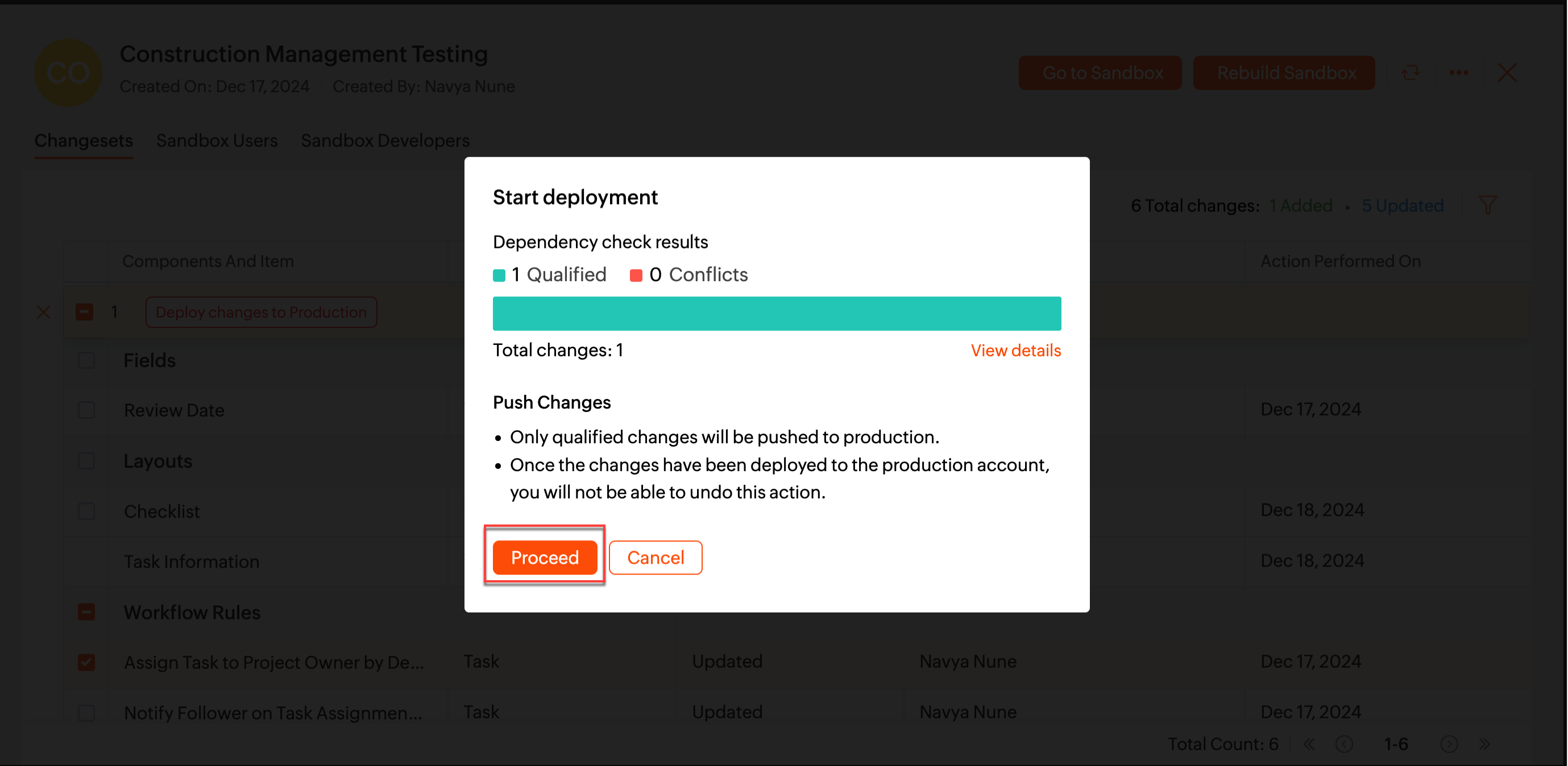 6. 適用する変更内容を選択し、[変更内容を本番環境に適用する]をクリックします。