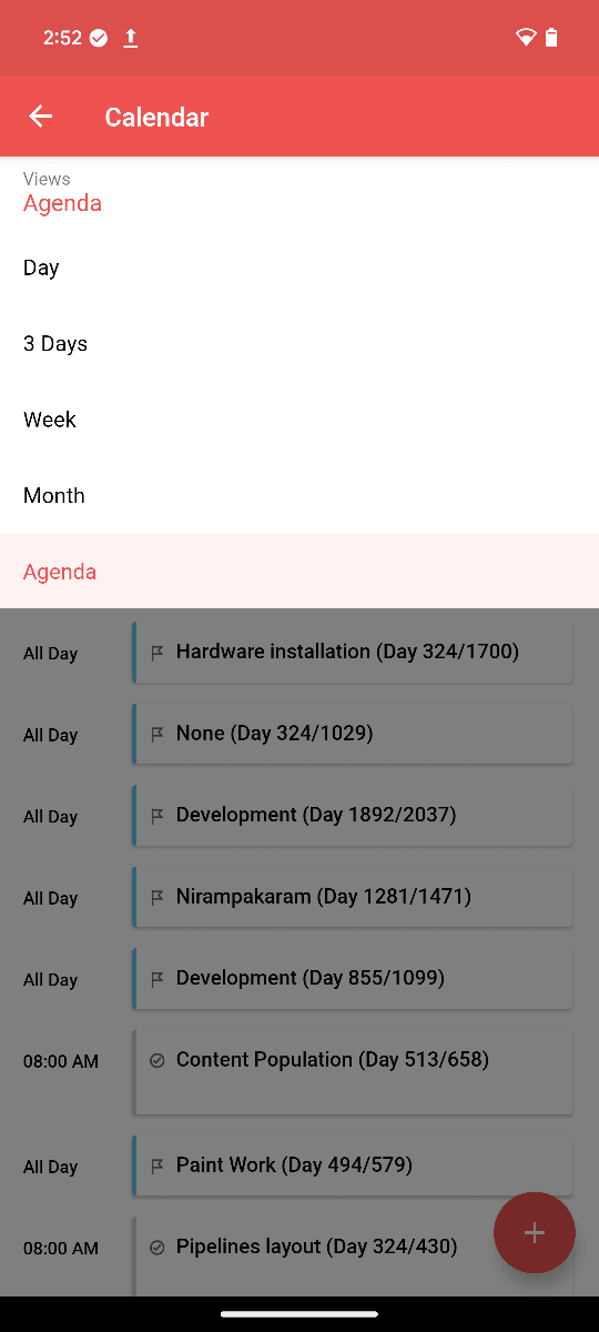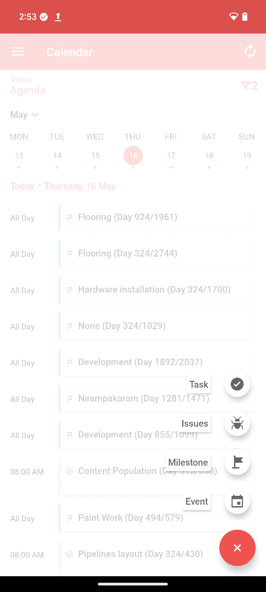 モバイルアプリのカレンダー機能では、プロジェクトの活動履歴を以下の表示で確認できます。