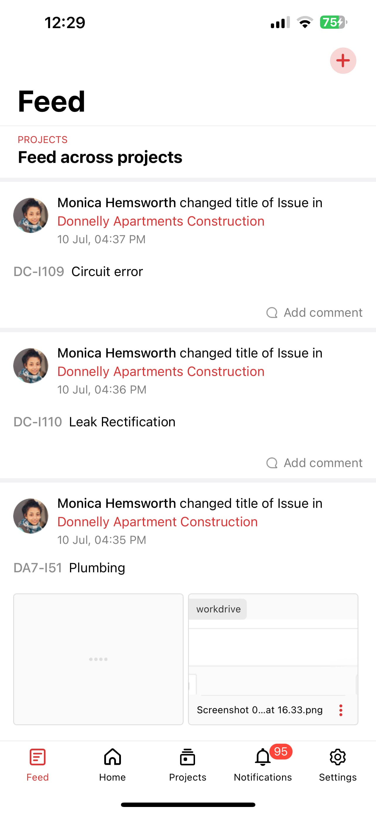 Zoho Projectsのフィードは、プロジェクト内での最新の活動を自動的に表示する機能です。FacebookやInstagramと同様に、関連付けられたプロジェクトで自分や他のユーザーが操作や活動を行うと、その内容がフィードに表示されます。 使用例 建設業務:建設会社の社長や、複数の現場を担当する監督は、進行中のすべてのプロジェクトや現場の状況を把握したいと考えています。そのような場合、関連付けられたプロジェクト内で行われた更新や活動は、その内容がフィードに自動で表示されます。 ...
