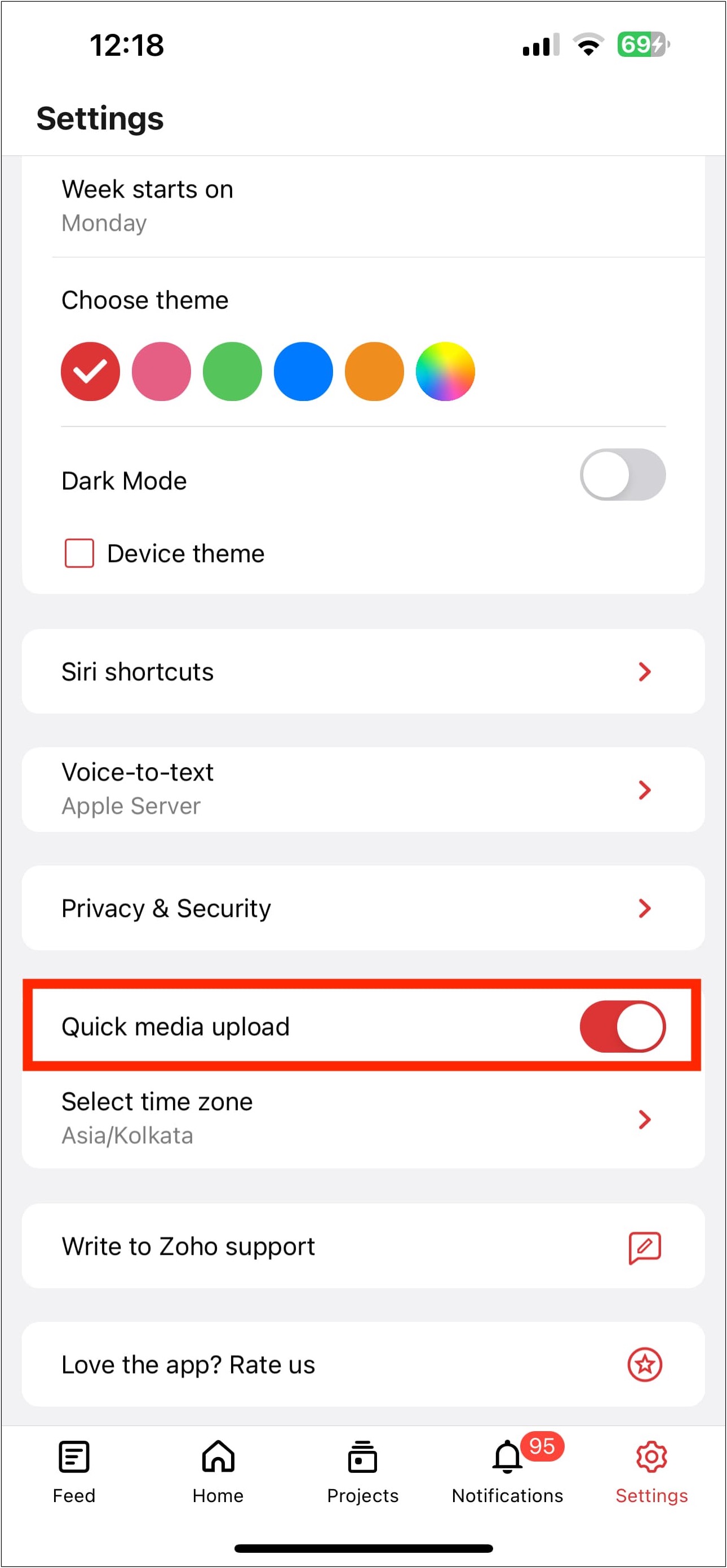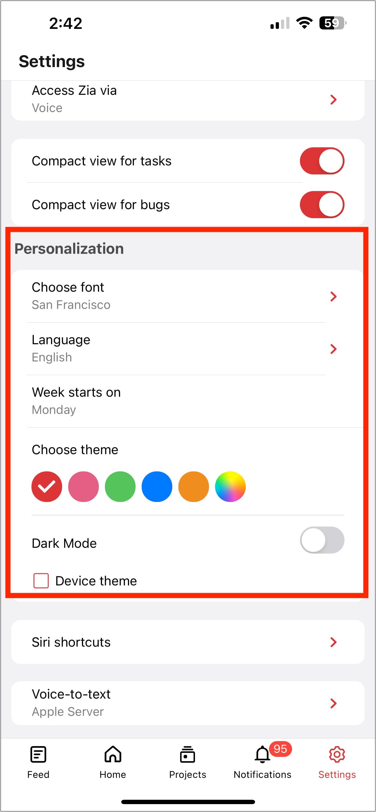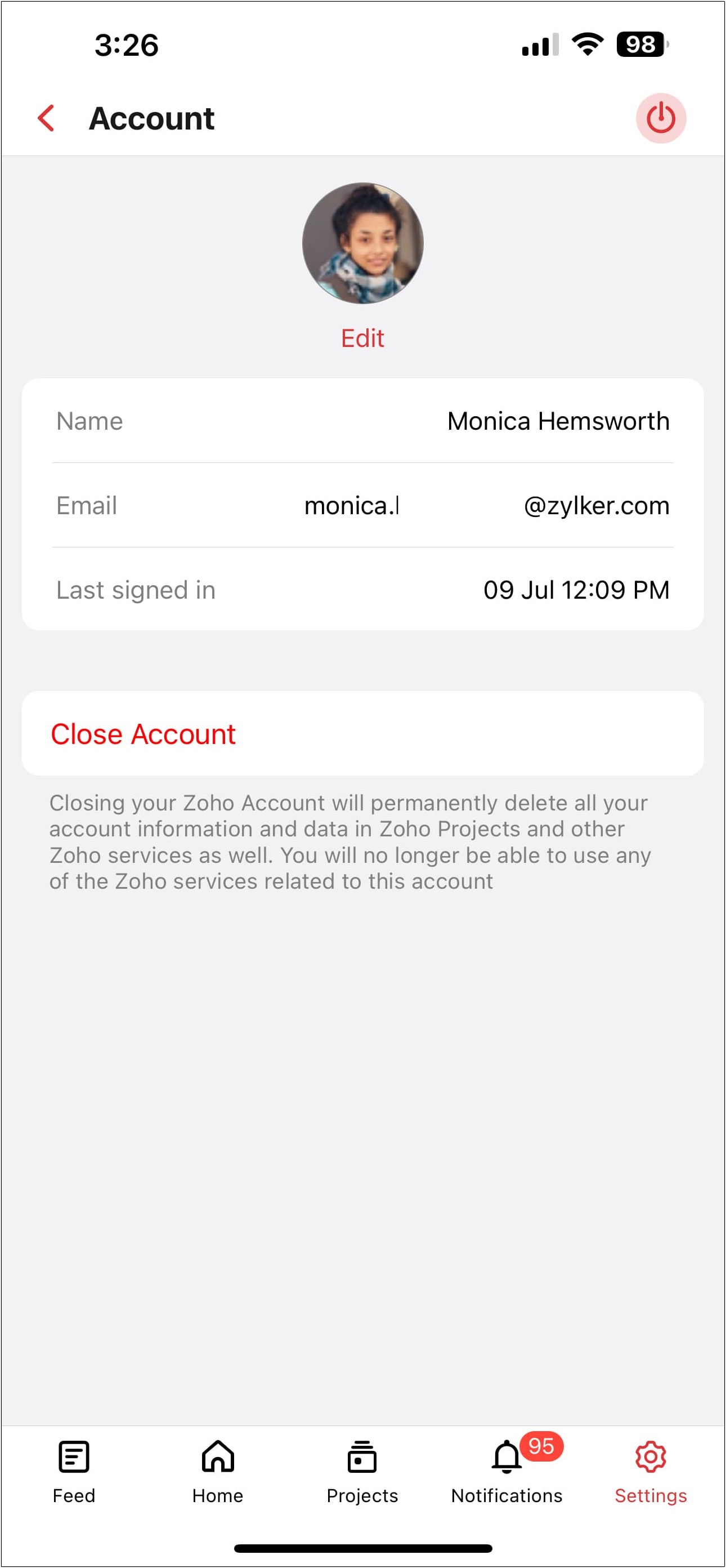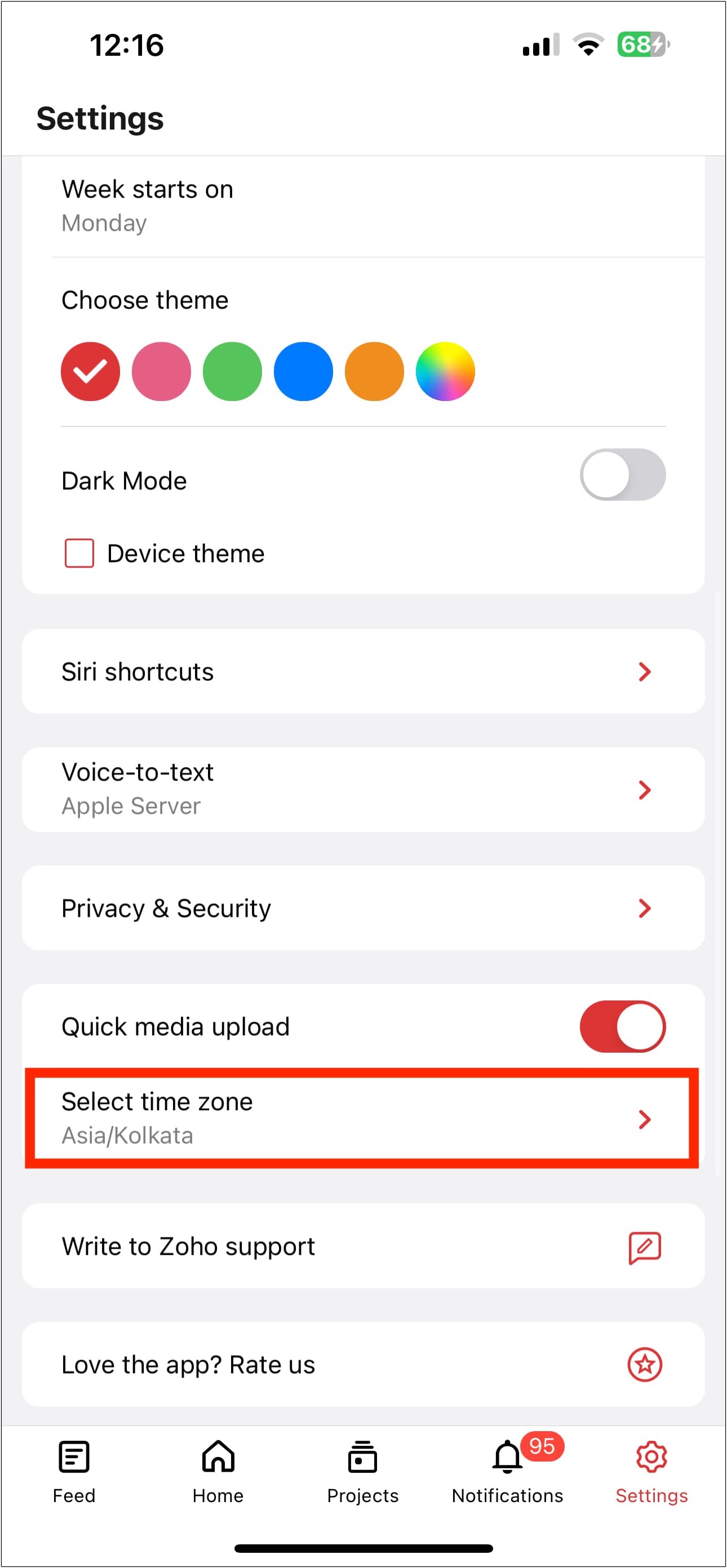 Zoho Projectsのモバイルアプリの設定は、モバイルアプリにのみ適用され、Webアプリの設定には影響しません。