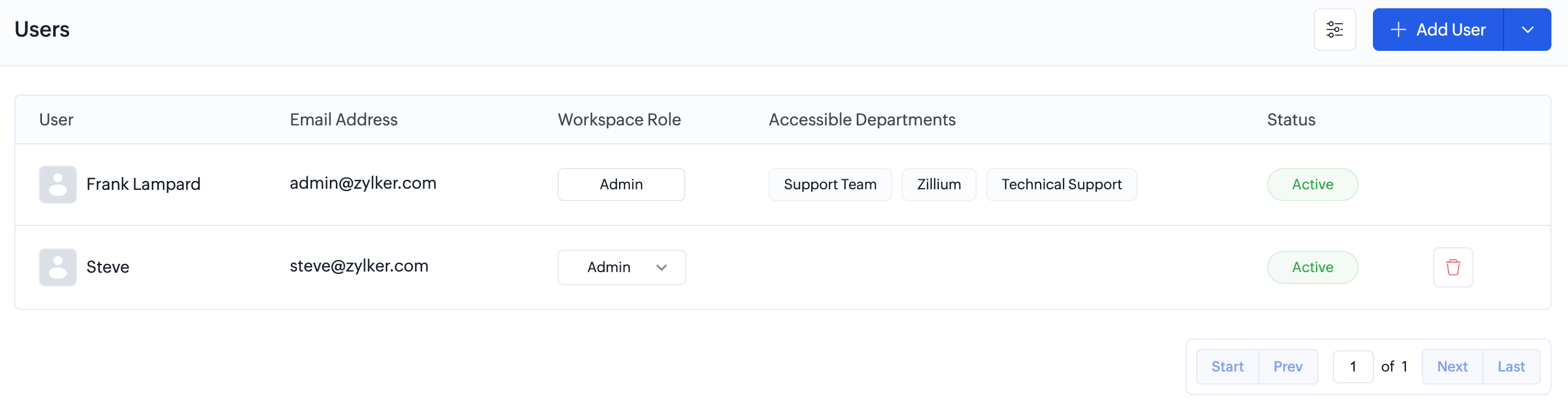 Zoho Quartzのユーザーページでは、ワークスペース内で効果的にユーザー管理ができ、適切な担当者に組織情報への適切なアクセス権を付与できます。また、組織ユーザーの追加時に、管理者またはメンバーとしてプロジェクトに割り当てることも可能です。