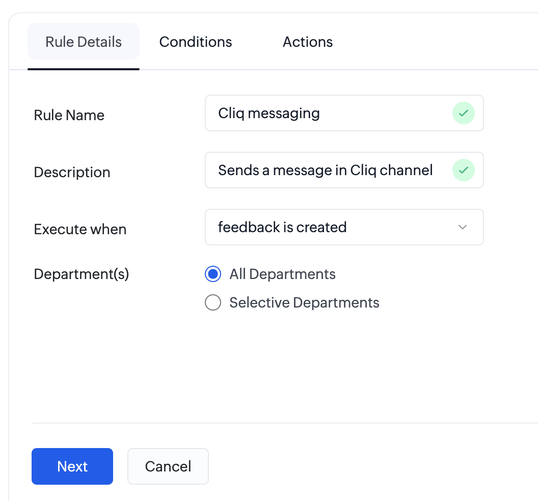 たとえば、組織内のコミュニケーションにZoho Cliqを利用している場合、Zoho QuartzとZoho Cliqを連携させることで、チームのチャンネルに新規フィードバックが送信された際に自動メッセージを設定できます。これにより、チーム全体で情報を共有し、顧客からのフィードバックに迅速に対応できるため、応答力やサービス品質の向上につながります。