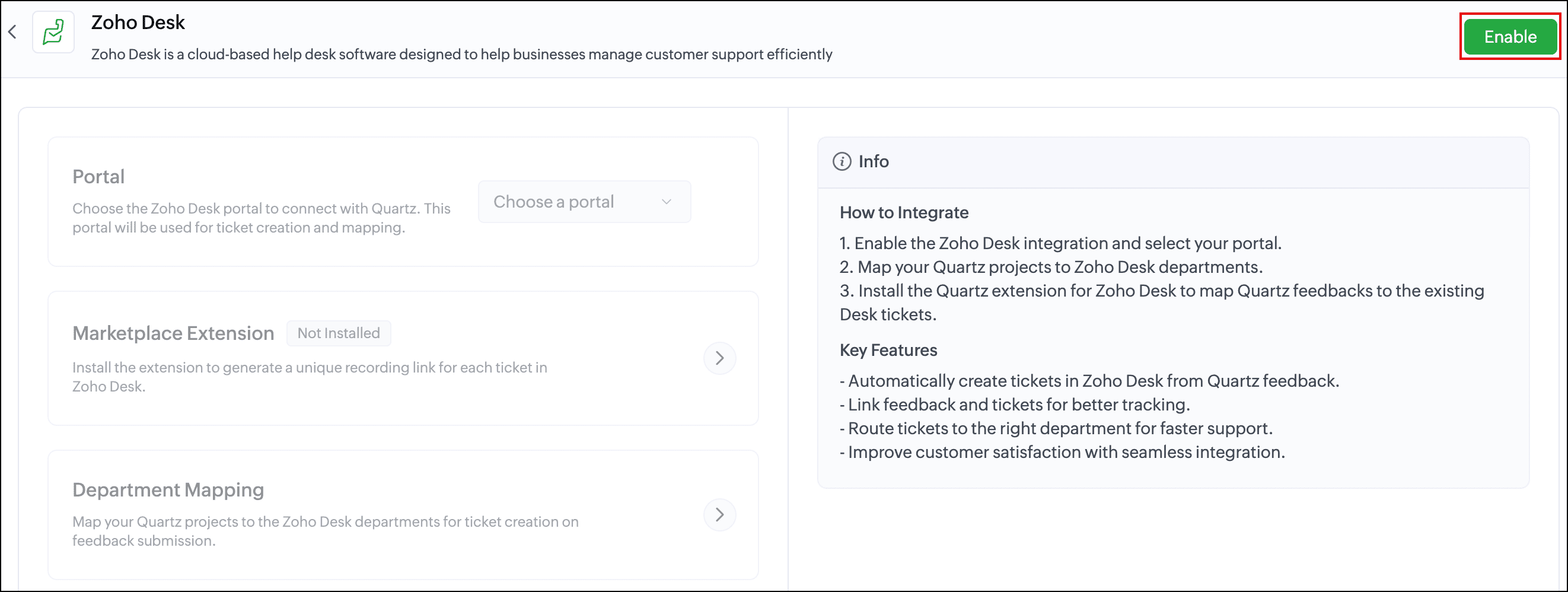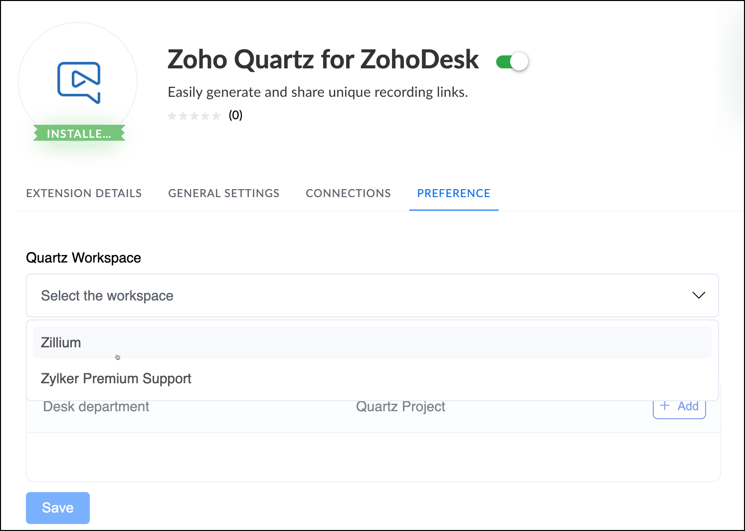 - Zoho Quartz for Zoho Deskにアクセスします。