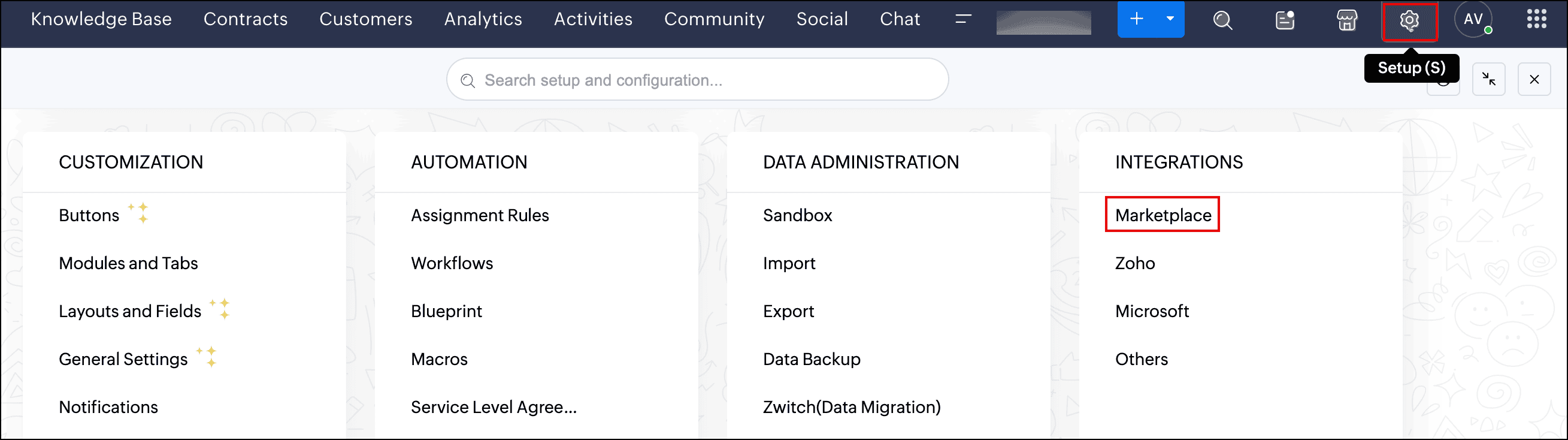 - Zoho Deskで、設定 > マーケットプレイスに移動します。