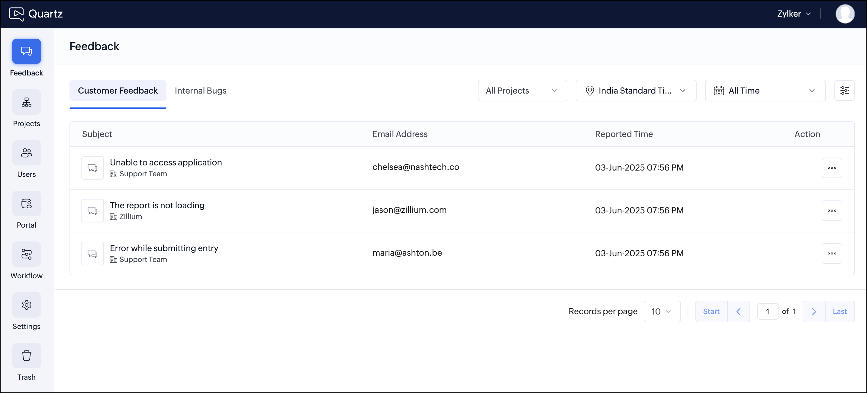 テスターや品質保証(QA)チームなどの従業員も、Zoho Quartzを利用して、社内テストやバグ発見活動中に発生した課題のデータや送信ができます。