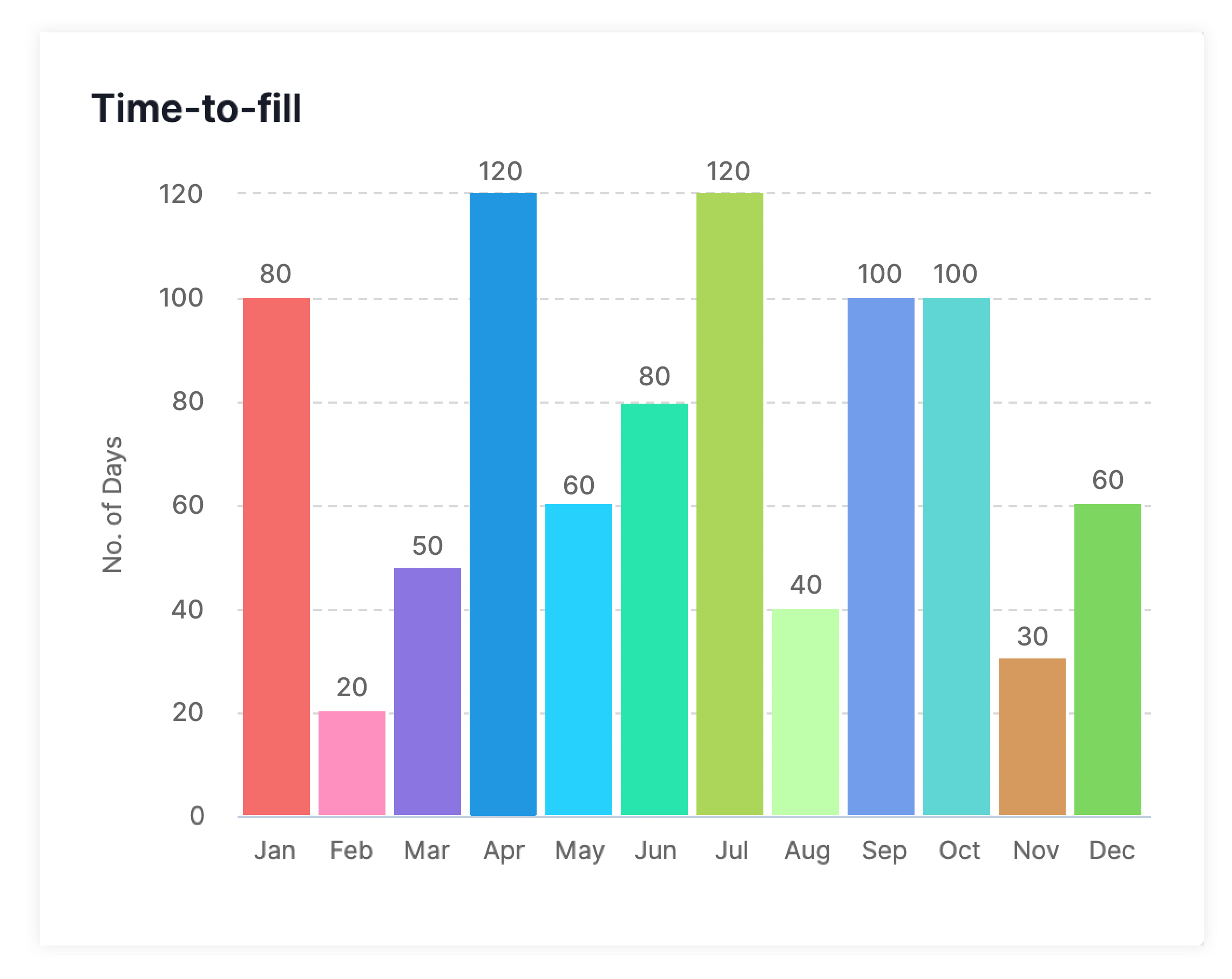 時間-to-fillは、求人が掲載されてからオファーが承認されるまでにかかる時間を測定する重要な採用指標です。この指標は採用の効率性を示すものであり、時間-to-fillが長い場合は組織の生産性や売上、従業員の士気に悪影響を及ぼす可能性があります。Zoho Recruit では、各求人ごとに時間-to-fillを追跡できるため、採用効率の可視化や改善点の特定に役立ちます。