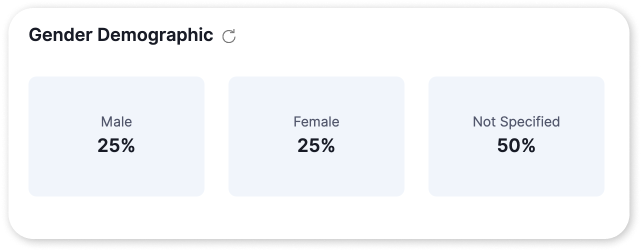 Gender Demographicは、採用パイプライン内の男女候補者数を詳細に分析します。この指標により、候補者プールの多様性を測定し、ジェンダーの代表性におけるギャップを特定できます。Zoho Recruitでは、パイプライン内の各候補者の性別を追跡でき、採用活動におけるジェンダー多様性を包括的に表示できます。
