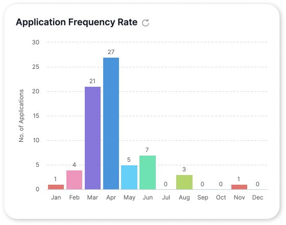 Application Frequency 単価は、候補者が開いているポジションにどれだけ頻繁に適用するかを測定します。この指標を通じて、求人投稿の品質やターゲット層への訴求力を分析できます。Zoho Recruitでは、各求人投稿ごとのApplication Frequency 単価を測定でき、どの投稿が最も有資格な候補者を引き寄せているかをクリアに把握できます。